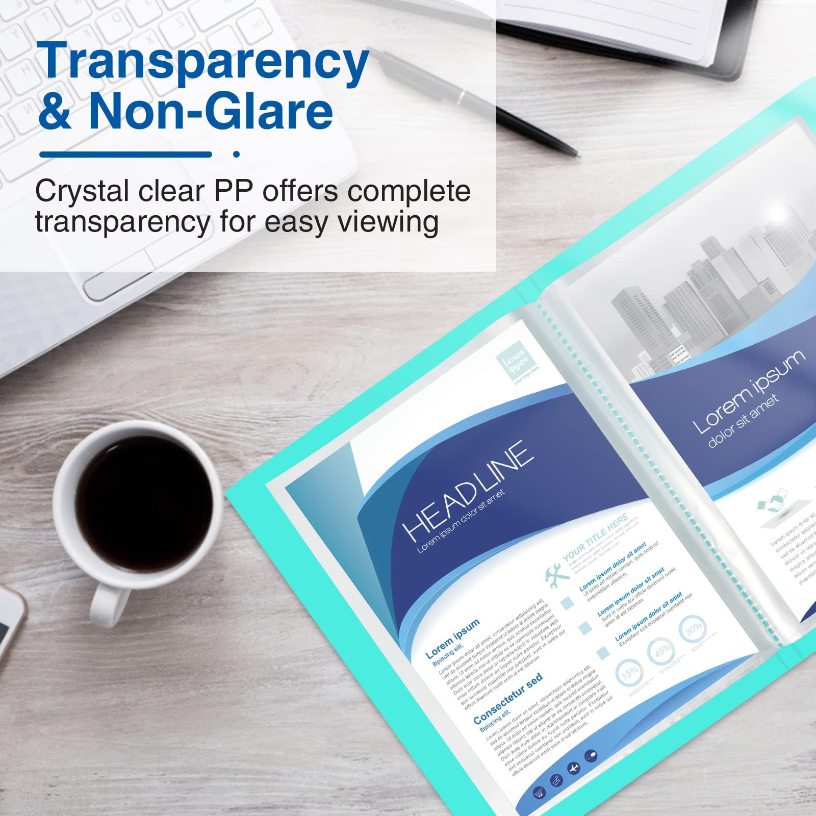 High Transparency & Lies Flat When Open: Our presentation book with crystal clear PP sheet protectors offers complete transparency for checking through and organizing. Bound sheet protector lies flat when open, free your hands.