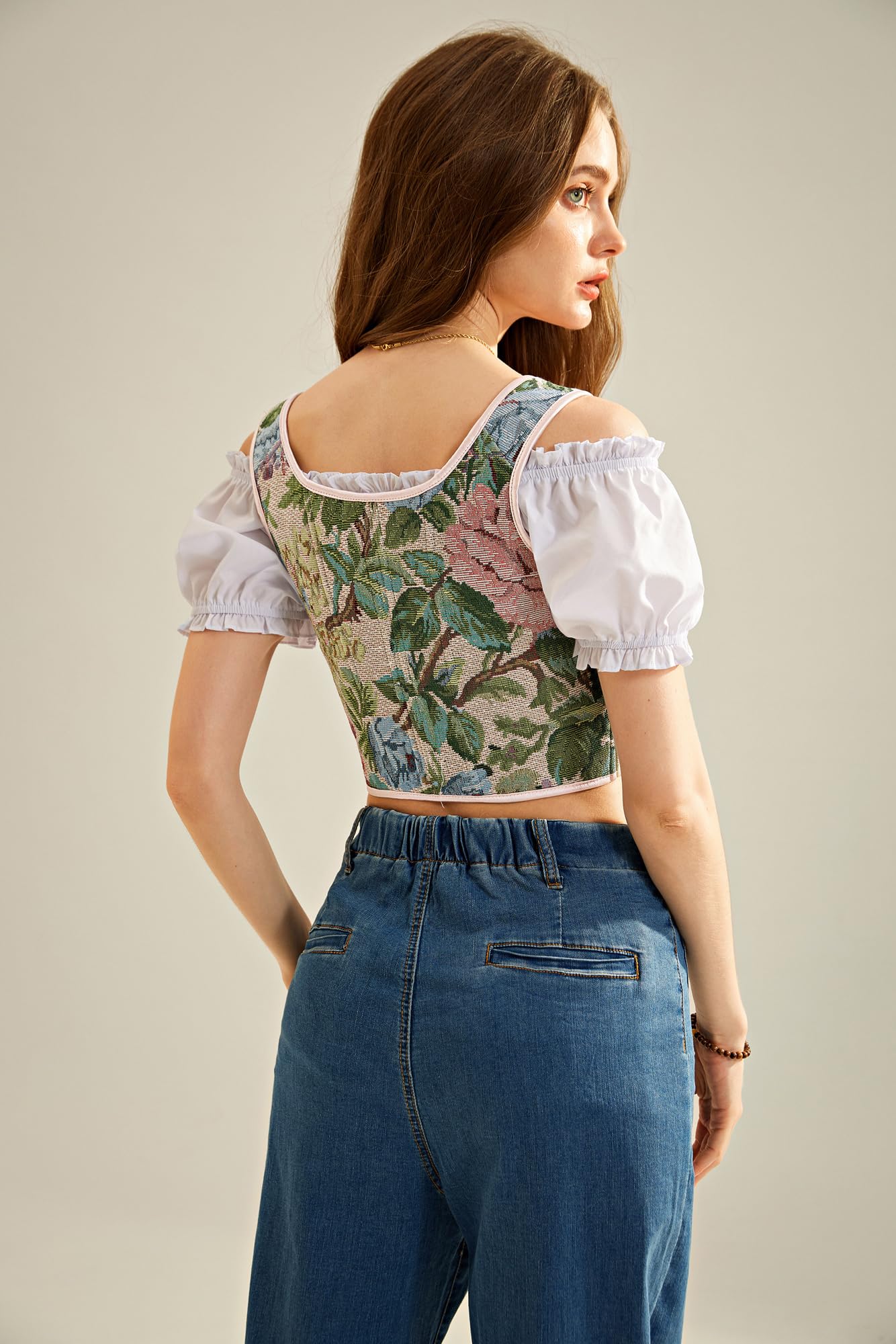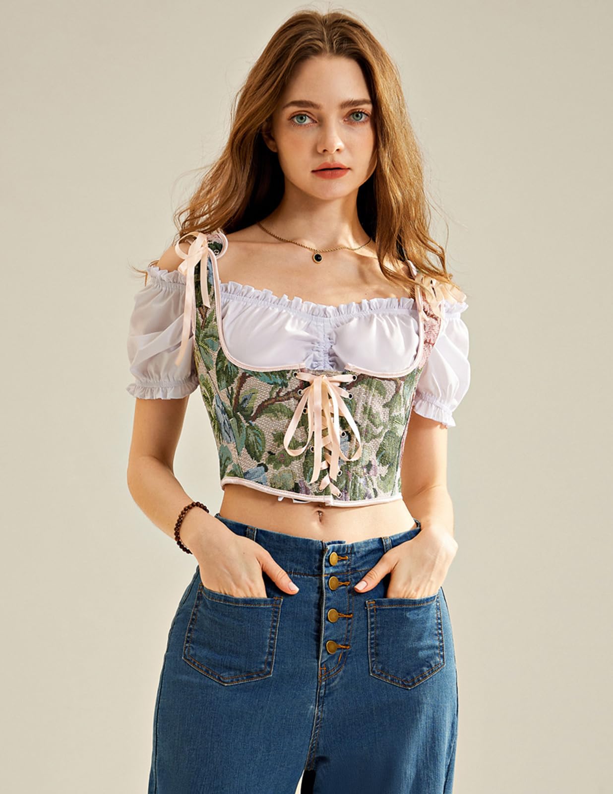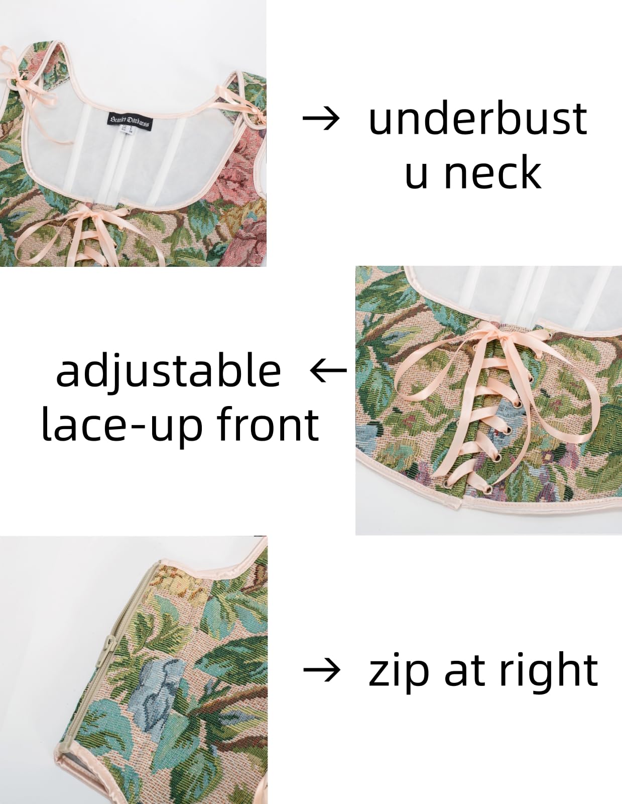Customizable Fit with Adjustable Tie-Shoulders and Lace-Up Front: The tie-shoulders of this floral corset can be easily adjusted to provide the perfect fit for your unique shape. Whether you prefer a snug or relaxed fit, you'll find the perfect comfort level with these adjustable ties. The lace-up front not only adds a touch of elegance to the bra's design but also allows for further customization. You can adjust the tightness to your preference, ensuring a comfortable and secure fit.
