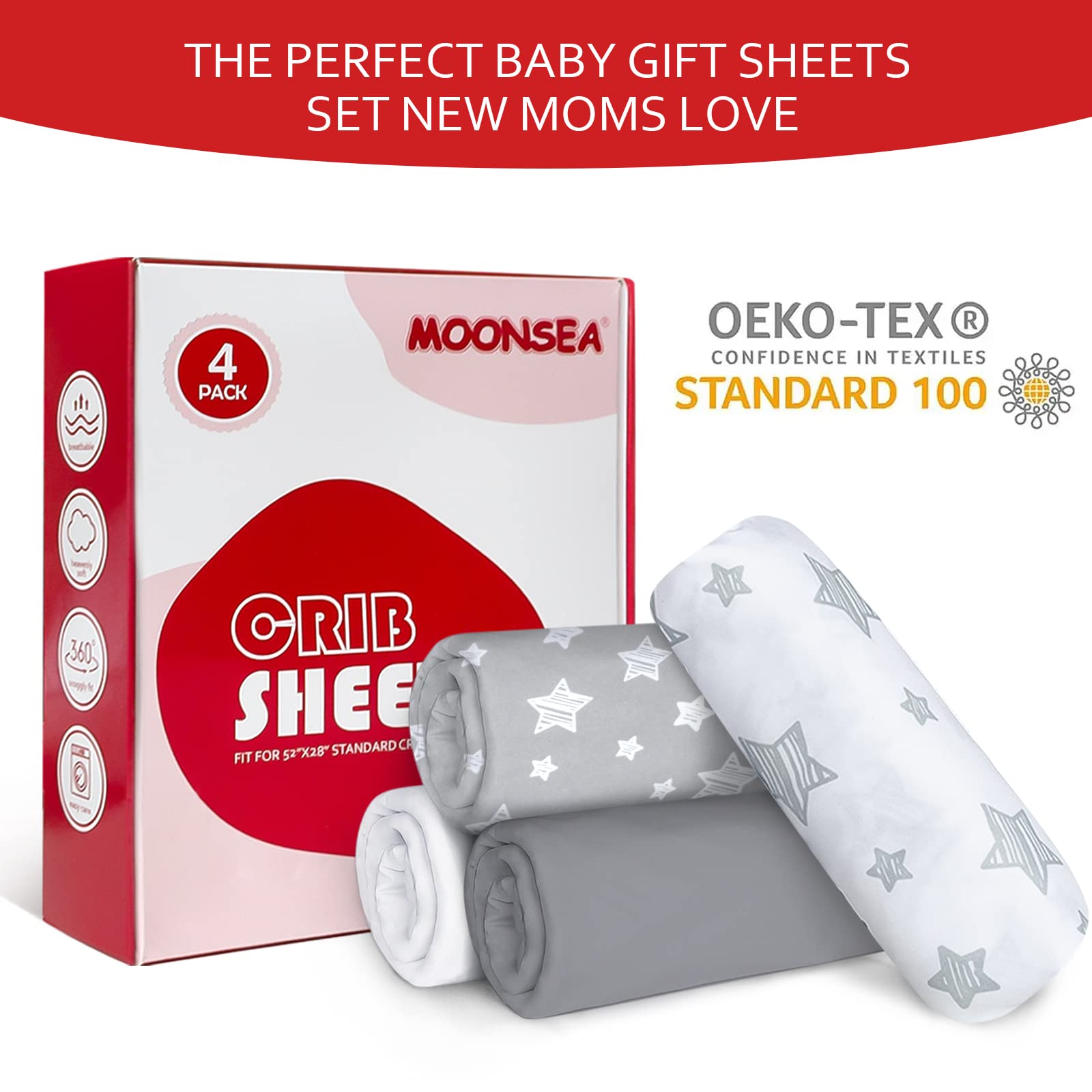 Snug Fit with Standard Size: The 4 pack sheets for crib fits perfectly on most standard crib mattresses and toddler mattresses, dimensions 52"X28"X 8". Our fitted crib sheets have an elastic band around the entire edge, a feature that makes the Sheet safer for babies.