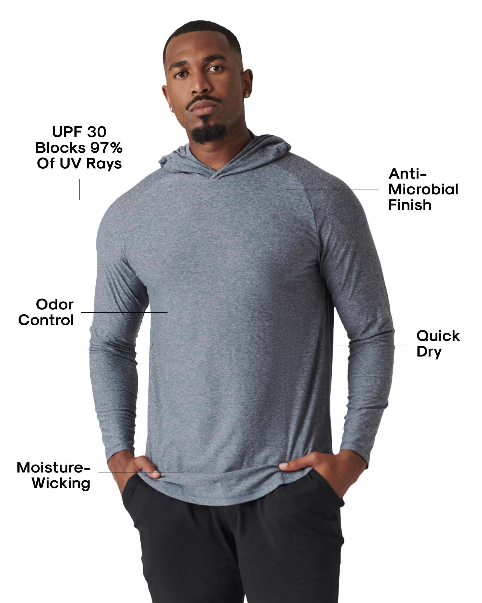 PERFORMANCE WHEN ACTIVE: Stay dry and fresh in the Active Hoodie—moisture wicking, quick-dry, odor control, and UPF 30 (UPF 15 on white). Lightweight 96% polyester/4% spandex with stretch, tagless comfort, and minimal shrinkage for repeat wear.