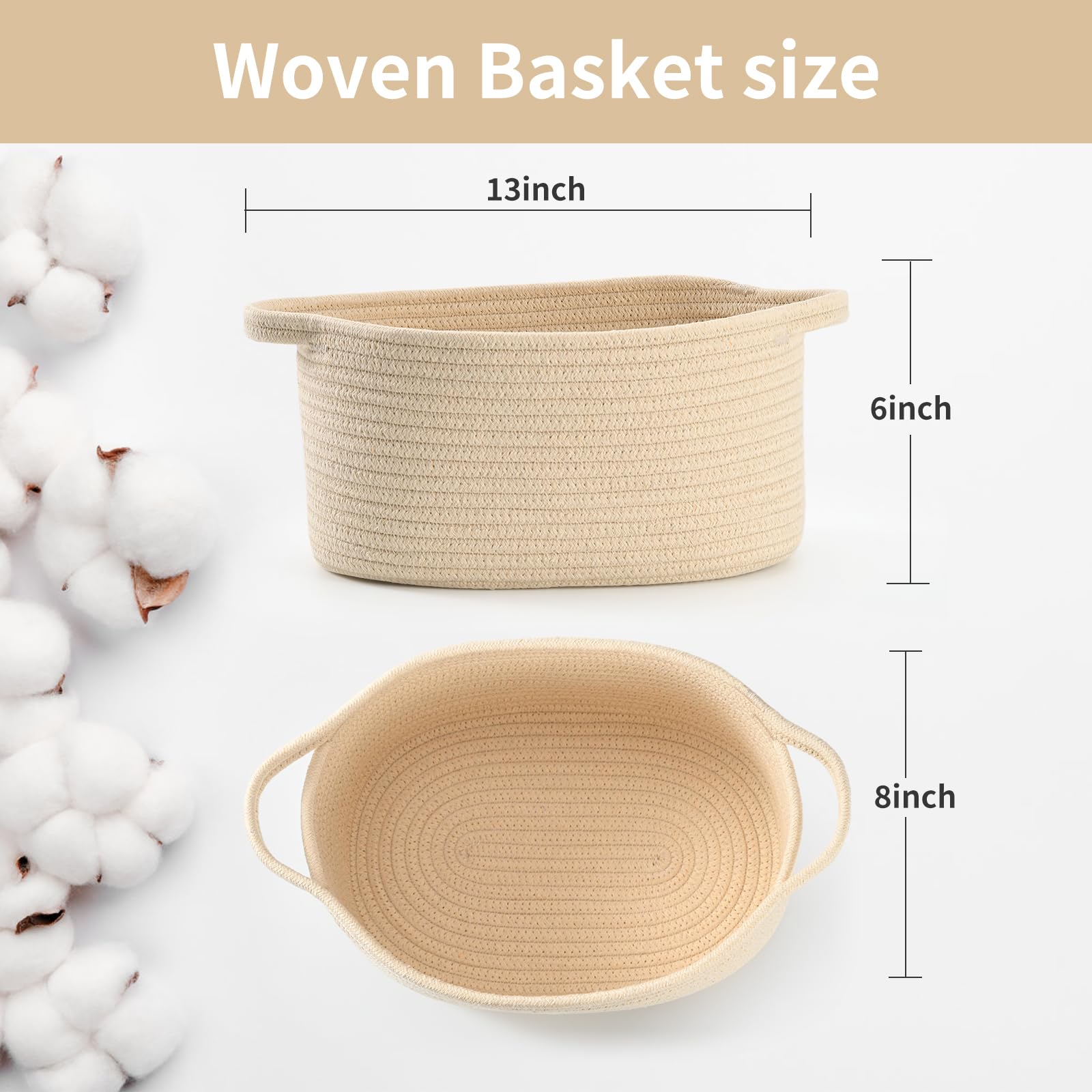 Charming Nursery Organizer: This cute woven cotton basket (13"D x 8"W x 6"H) provides beautiful decorative storage for diapers, blankets, toys, clothes, baby essentials, and more. Soft, pet-friendly and child-safe rounded edges