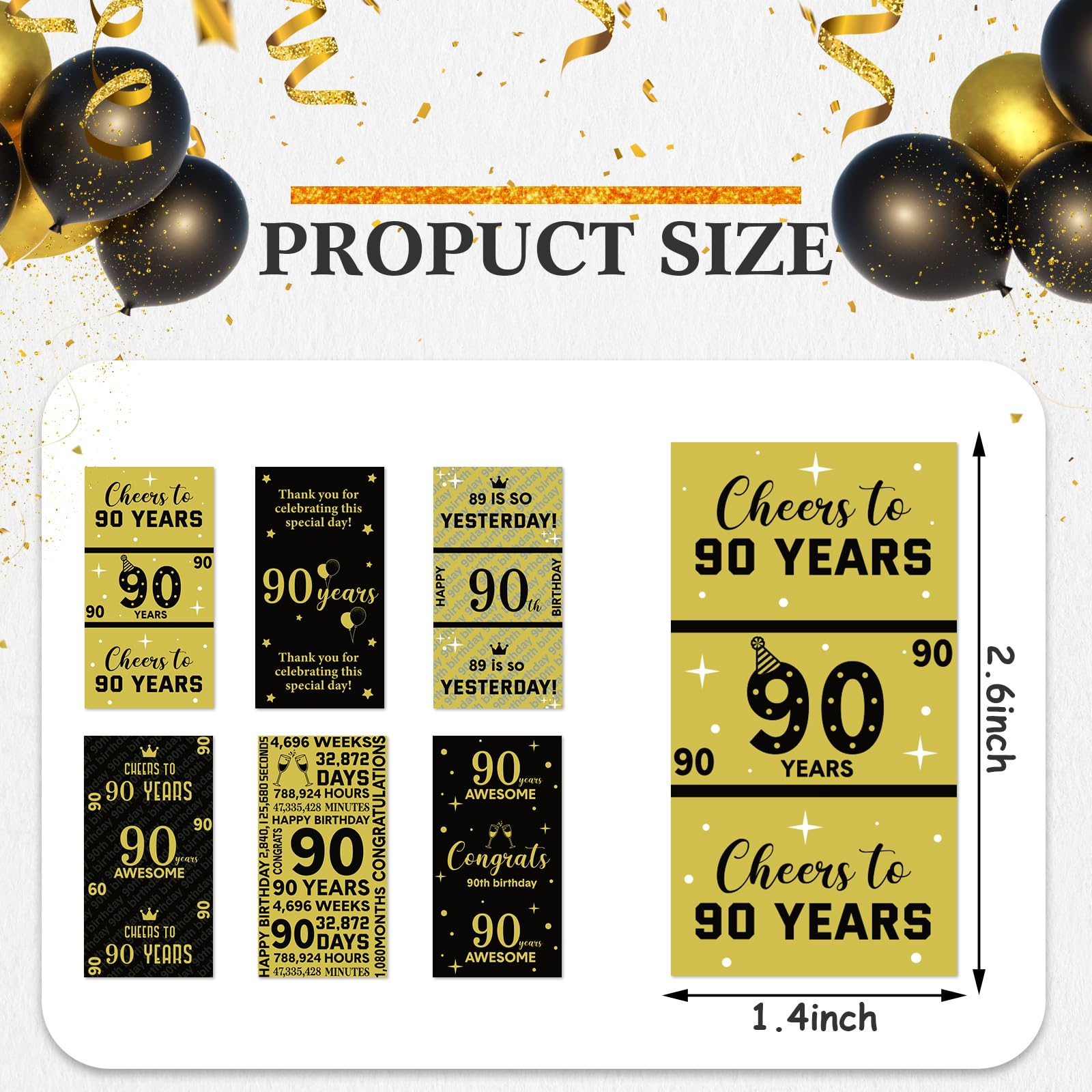 Elegant Black and Gold Design: these 90 years stickers feature a captivating black and gold color scheme, printed with the words of [congrats 90th birthday] and [happy 90th birthday], which are meant to celebrate the milestone of 90 wonderful years, creating a formal yet vibrant ambiance