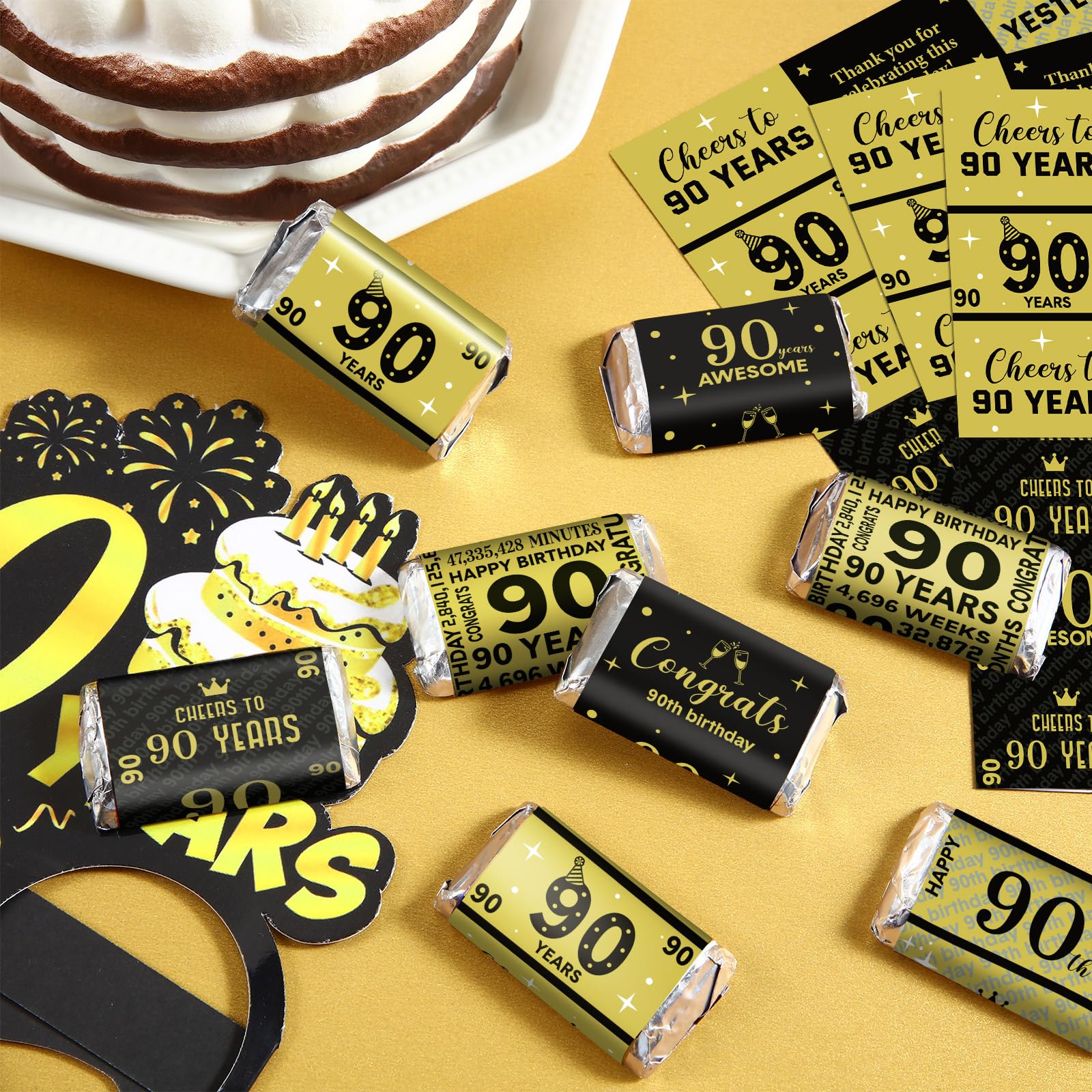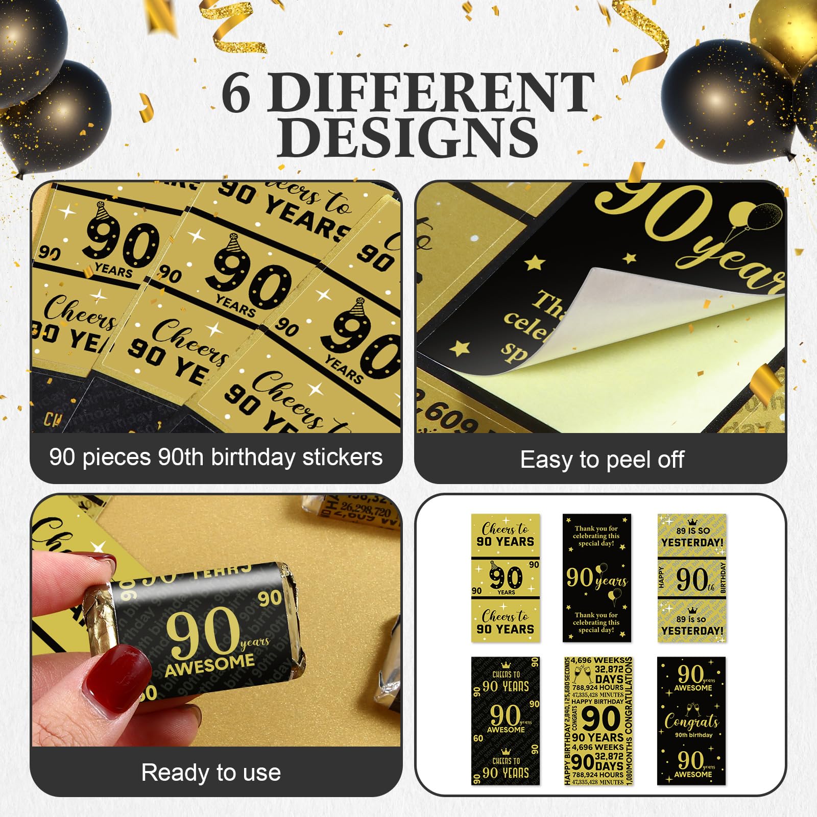 90Th Birthday Celebratory Essentials: these stickers to 90 years candy stickers can be applied to all types of 90th celebrations; Whether it's for a personal party or a grand event, you can adorn candy bars, party favors, glass jars, or personal gifts with these stickers, creating beautiful 90th birthday keepsakes