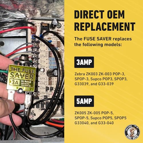 UNIVERSAL HVAC COMPATIBILITY - The Fuse Saver is universally compatible with all HVAC and electrical equipment, encompassing central air conditioners, furnaces, and any circuit board utilizing either an ATC 3 Amp fuse or 6 Amp fuse