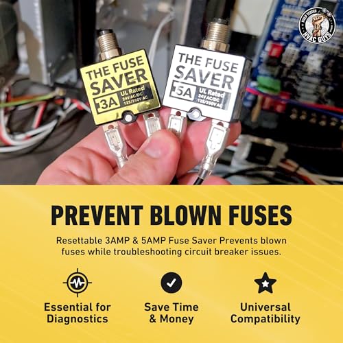 SAVE YOUR FUSES - Our resettable fuse saver helps prevent blown fuses when troubleshooting circuit breaker problems. Simply plug the terminals into the fuse receptacle to test the breaker. If the breaker pops, manually reset the Fuse Saver to continue troubleshooting. The Fuse Saver is designed with a self-adhesive backing for easy temporary installation.