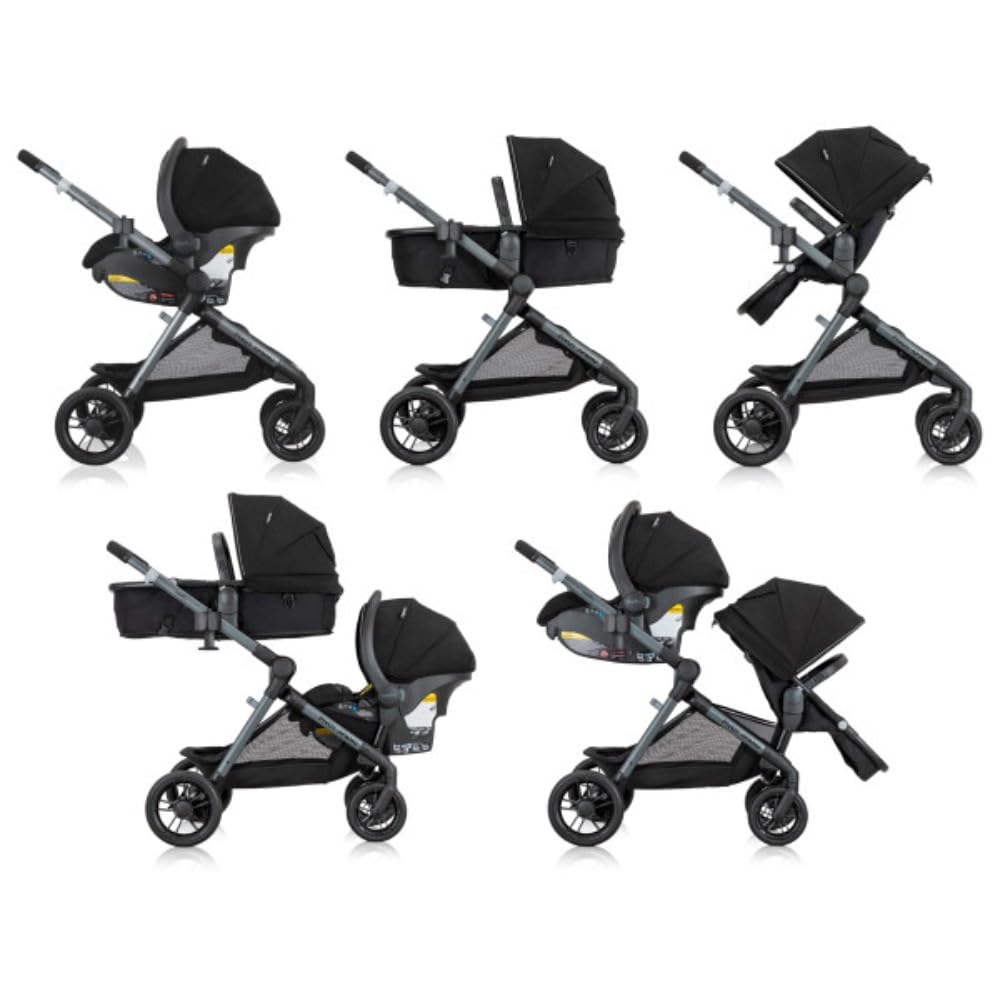 The Evenflo® Pivot Xpand™ Modular Travel System with LiteMax™ Infant Car Seat easily transitions from a single to double stroller without adapters or tools — simply slide up and flip out the integrated seat mounts to add a toddler seat! Attach two toddler seats, two infant car seats, or one of each. Designed for ultimate flexibility, the frame accommodates up to 23 configurations in the USA for infant and toddler seating at various heights in both parent-facing and forward-facing modes. Your little one will enjoy stretching out in carriage mode or sitting up tall with a heightened canopy. From one to two, the Pivot Xpand grows with your family! This versatile travel system helps baby feel comfortable for all your adventures. Serious about storage? The Pivot Xpand’s extra-large, easy-access basket expands to over 2 feet in length to hold a diaper bag, plus whatever else you need for the day! When not in use, the Pivot Xpand folds compactly with the toddler seat attached and self-stands for convenience. Find the most comfortable position for your child with a 3-position reclining toddler seat and 6-position adjustable footrest. Large cruiser tires with front-wheel swivel and rear-wheel suspension provide a smooth ride and superior maneuverability. The flip-flop friendly rear brake safely locks wheels in place as you take your child in and out of the stroller. The large canopy shields against sun, wind and rain and a peek-a-boo window keeps baby visible at all times. The canopy’s adjustable height allows you to accommodate baby’s growth spurts. Parents will enjoy a 4-position adjustable handle, removable bumper bar, and flex-hold cup holder that fits a variety of beverage sizes to help avoid spills. The Pivot Xpand Modular Travel System comes with the LiteMax Infant Car Seat, including a stay-in-car convenience base with an integrated belt lock-off system to help ensure secure installation in no time. An integrated belt lock-off system, multi-position base and recline indicator help you properly install the car seat. At Evenflo, we go above and beyond government standards to create car seats that are safe. The Evenflo LiteMax Infant Car Seat meets or exceeds all applicable federal safety standards. It is structural integrity tested at energy levels approximately 2x the federal frontal crash test standard, and it is rollover tested and temperature tested. If you need help installing your car seat, our ParentLink® Consumer Care Team offers help online in real time. Get live video support with a certified car seat safety technician to ensure proper vehicle installation, so you can drive with confidence. Families have trusted Evenflo for more than 100 years for smart, innovative gear designed to make life easier, safer and more comfortable at home and on the go. We believe every moment with your growing little one counts — that’s what drives us to find new ways to simplify the work of parenting and caretaking. With the time and peace of mind you need, you can focus on what matters most: your child.