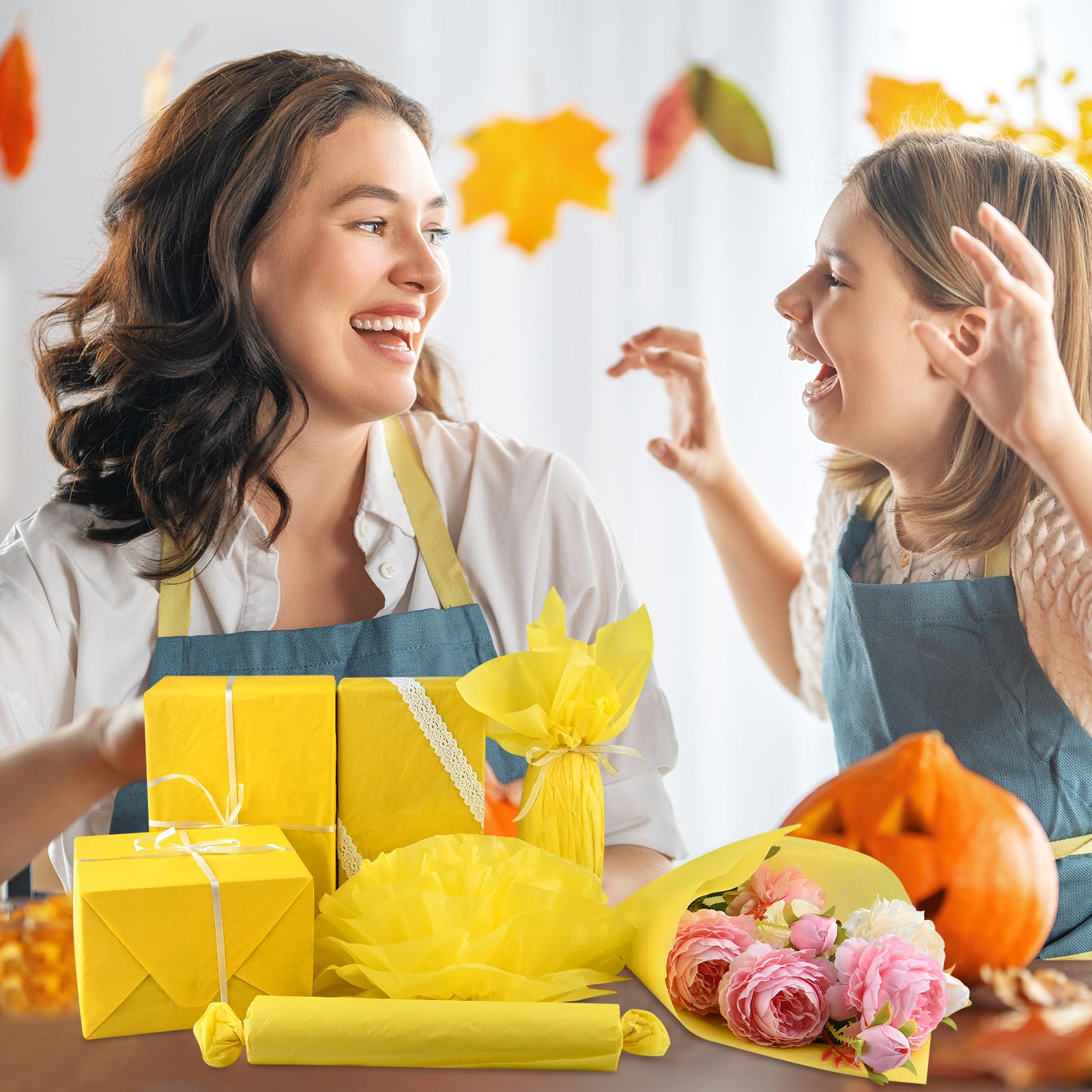 Multiple Uses: Yellow wrapping paper is a pleasant choice for wrapping gifts, gift bag decoration, gift box filling, wrapping bouquets, wine packaging, DIY crafts, paper flower making, basket liners