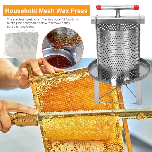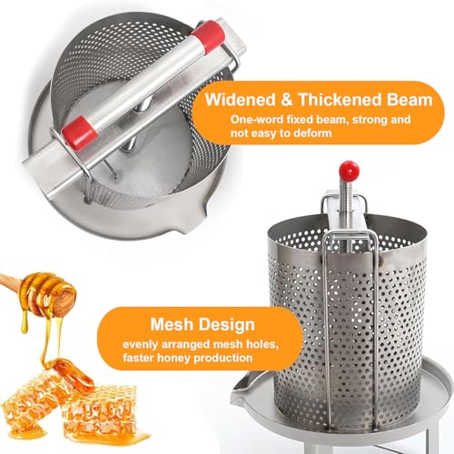 【Stainless Steel Material】- Honey processing machine is made of food grade stainless steel. No ingredients will seep into the food when you use it, which can maximize the retention of the nutrients of the honey. The mesh size on the barrel wall is evenly arranged and more suitable for evenly pressing honey and wax.