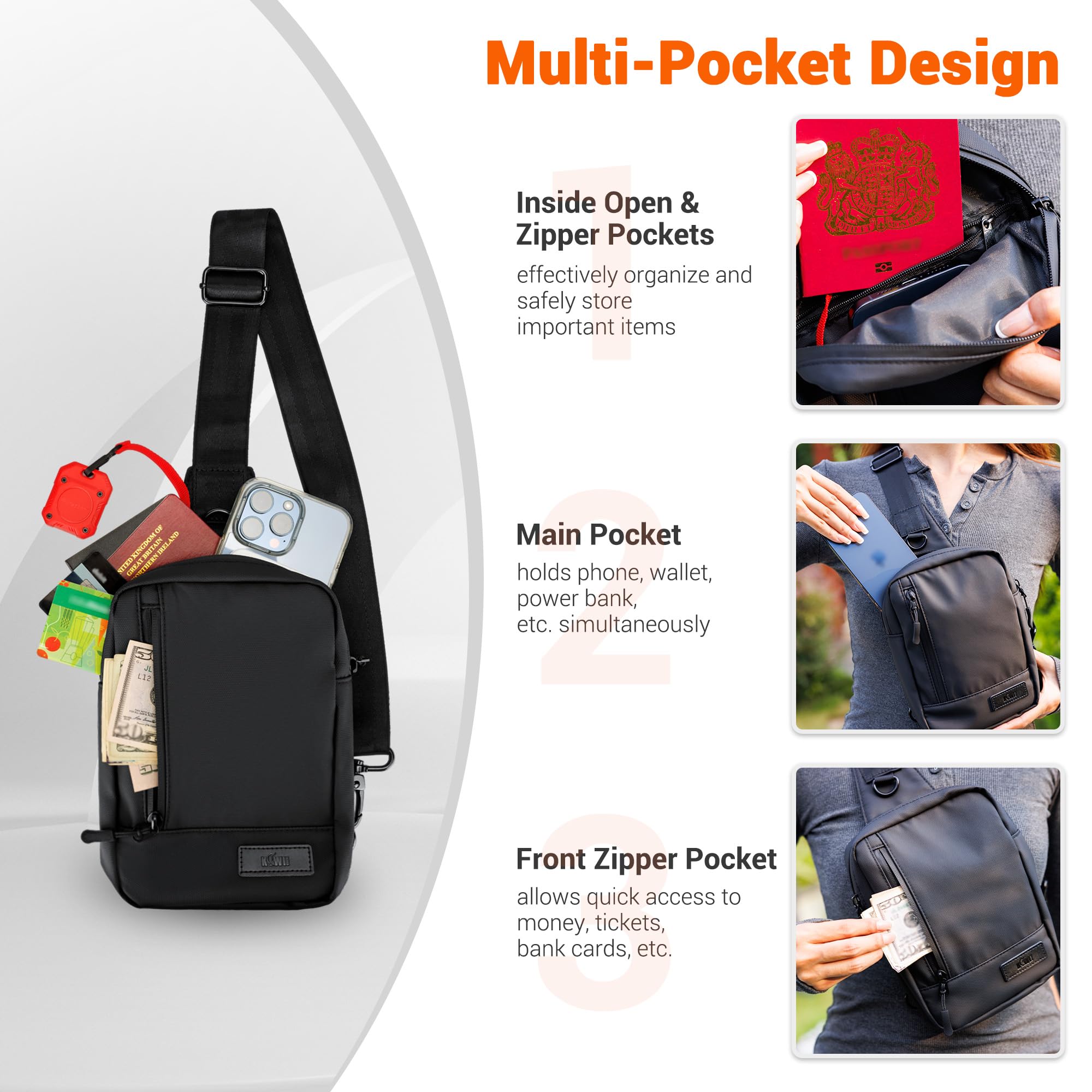 [Compact Crossbody Sling Bag] The Travel women's sling bag can hold up to for iPad mini 6 8.3 inch iphone 16Pro max, power bank, charger, keys, pocket change, glasses, and other items. What's more, the zipper pocket in front of the phone holster for easy storage of your credit cards, ID cards, passport, etc. It's multi-occasions and allows you to carry it in various ways like across the body, over one shoulder, chest bag or as a hand-held bag.
