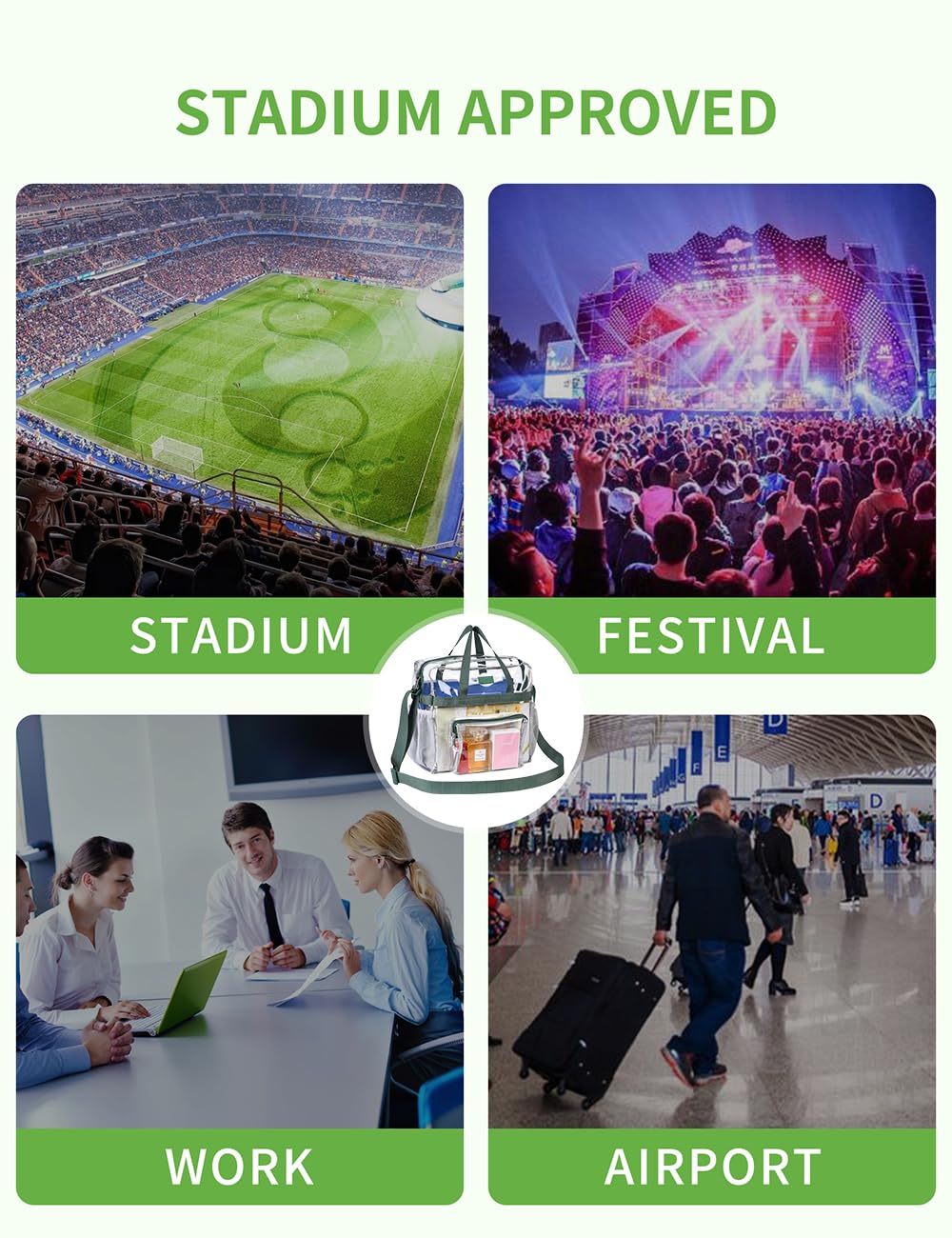 【Clear Stadium Bag】Casual daily wear, it has an adjustable shoulder or cross body strap, sturdy it would stay molded in its rectangular shape making it easy to place in between the seats.