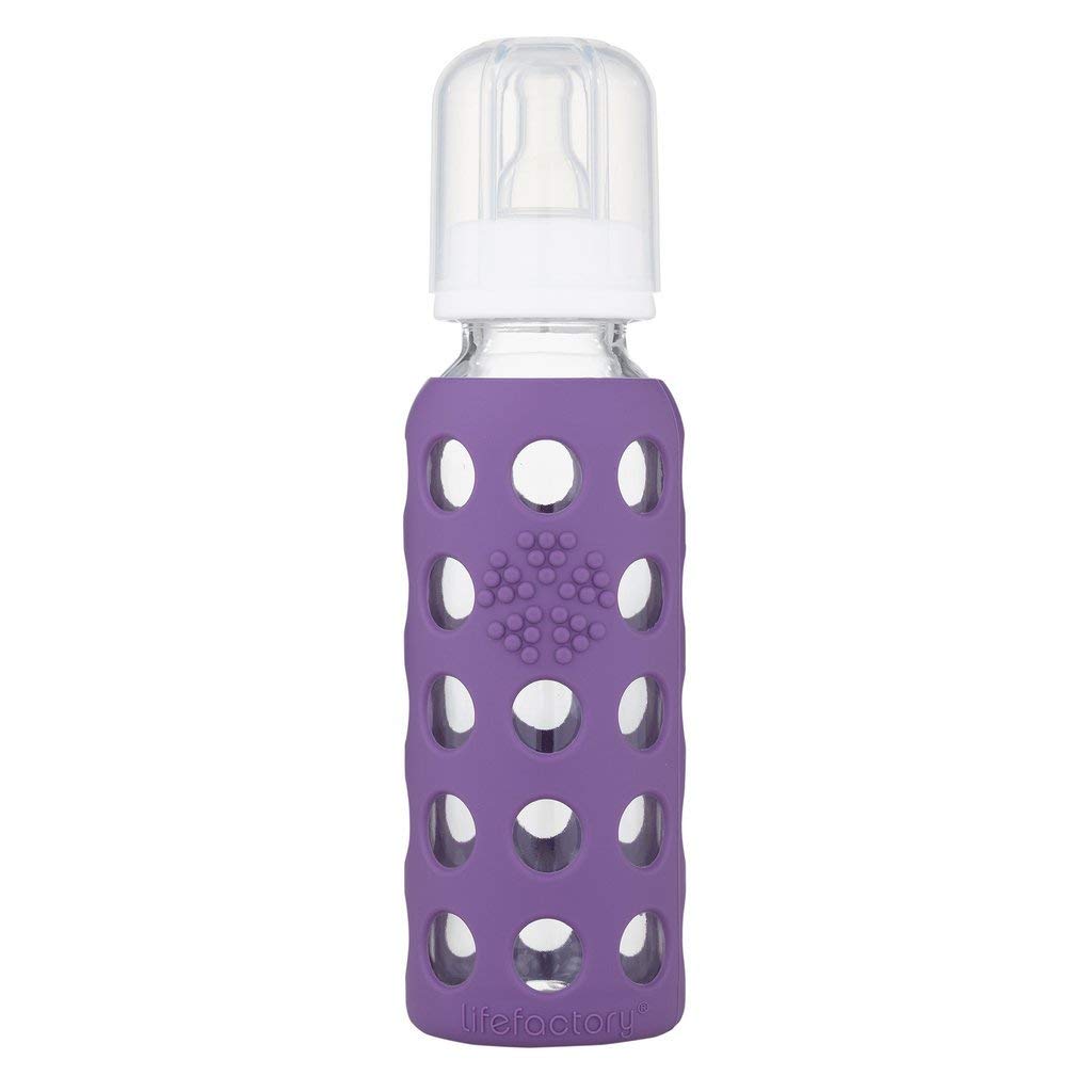 The perfect starter bottle for baby. The Lifefactory 4oz glass baby bottle comes with a silicone sleeve, polypropylene cap, ring, and stopper, and a Stage 1 (0-3 months) silicone nipple. These are wonderfully easy to clean: the bottle stays inside the silicone sleeve, and go right in the dishwasher. As baby grows the Lifefactory 9 oz glass baby bottle is the next step up. With a variety of nipple sizes and sippy caps our bottle adapts to your baby's changing needs. The 9 oz. bottle comes with a silicone sleeve, polypropylene cap, ring, stopper, and a Stage 2 (3-6 months) silicone nipple. You'll appreciate the grippy surface of the colorful silicone sleeve, and you'll love the fact that you're using a glass bottle that is manufactured with high quality materials.