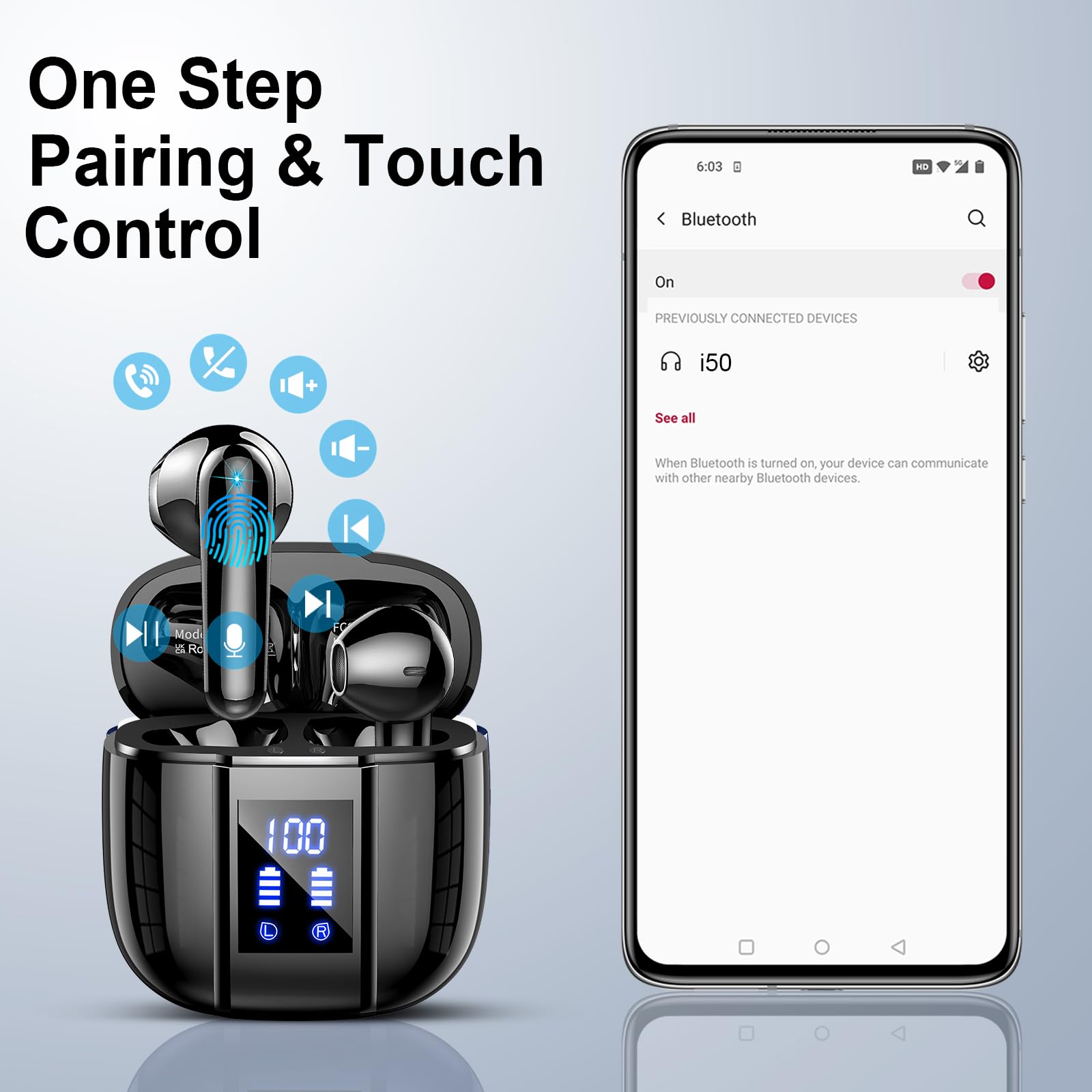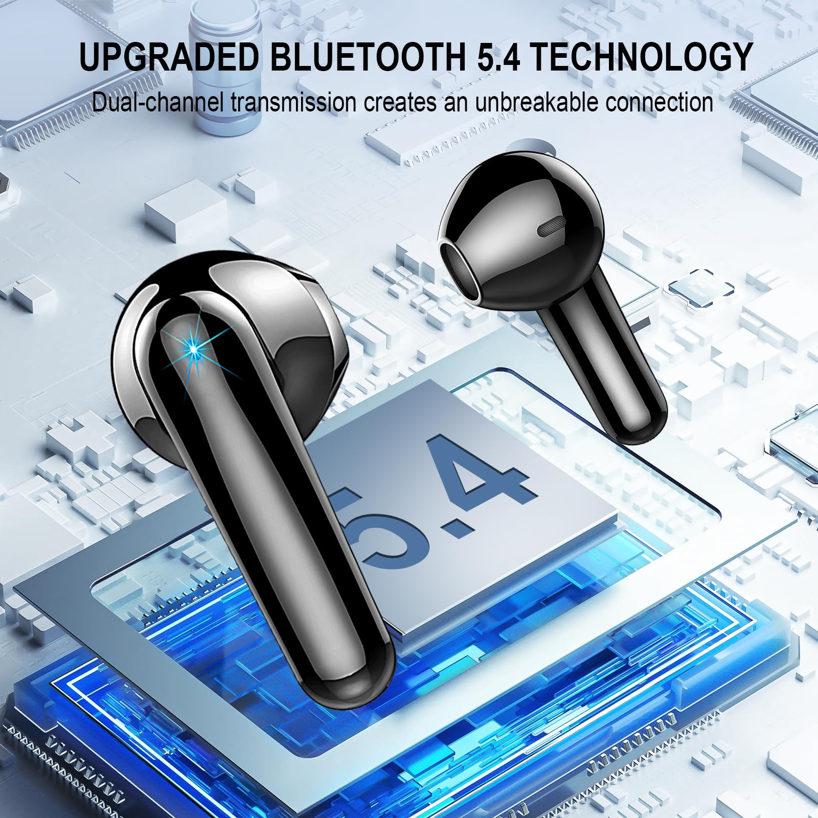 Bluetooth 5.4 Stable Connection:Stay effortlessly connected with cutting-edge Bluetooth 5.4 technology engineered into these advanced wireless earbuds. Experience incredibly stable signal transmission—30% stronger anti-interference—for flawless, drop-free audio. These versatile Bluetooth headphones instantly reconnect when the case opens, with ultra-low latency perfect for immersive gaming, smooth movies, and crystal-clear calls. Never miss a moment of your audio journey.