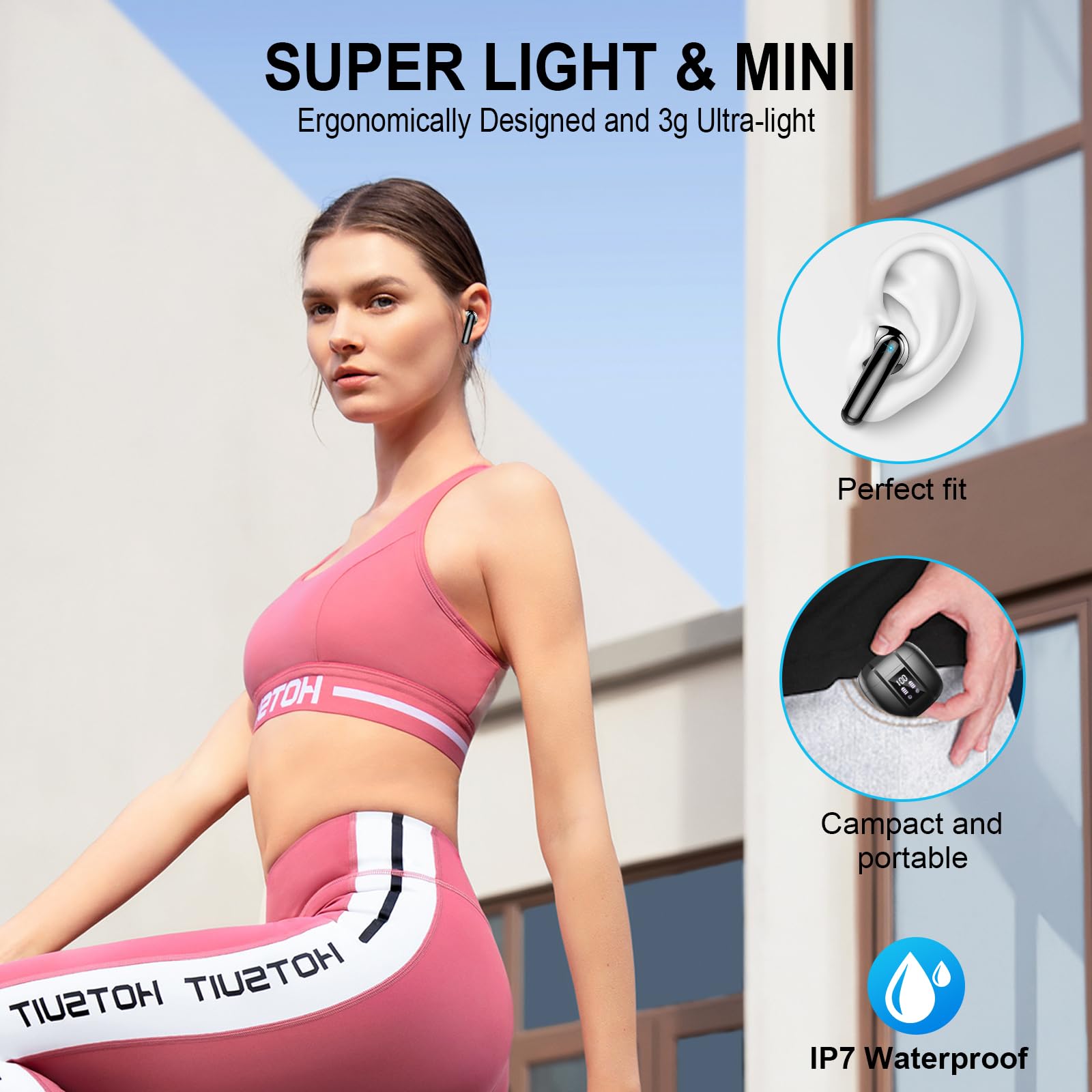 IPX7 Waterproof & Intelligent Touch Control:With intuitive touch-sensitive controls, these wireless earbuds for Android let you manage playback, adjust volume, handle calls, and activate voice assistants directly from the earbuds—no phone needed. Built with IPX7-rated protection and advanced nano-coating technology, they effectively resist sweat and rain. Ideal for outdoor sports and demanding environments, these waterproof earbuds deliver reliable performance and clear sound anywhere.