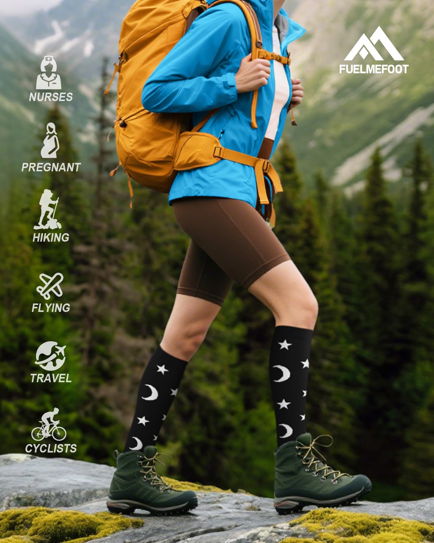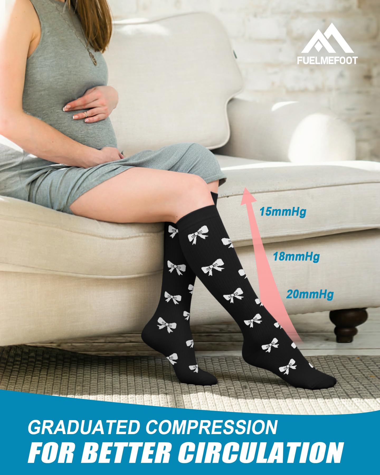 【ULTIMATE COMFORT & SUPPORT FOR ALL-DAY WAER】Our compression socks' delivering 360-degree stretch for all-day comfort and support, these compression socks offer the perfect balance of pressure and flexibility, with 15-20mmHg graduated compression. Whether you're on your feet all day or traveling, these socks enhance circulation, reduce swelling, and keep your legs feeling refreshed. Perfect for athletes, nurses, pregnant women, and anyone on the go.