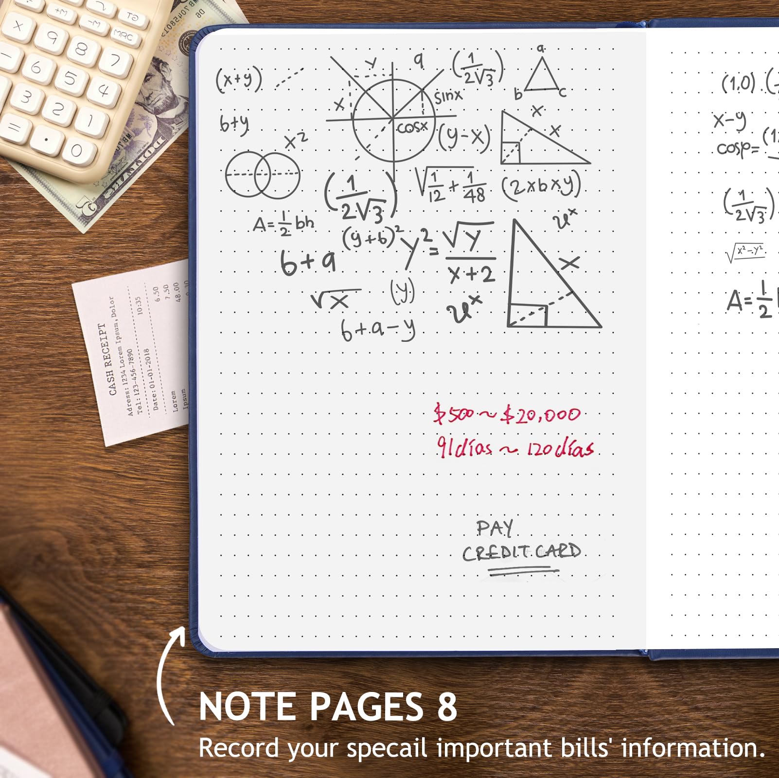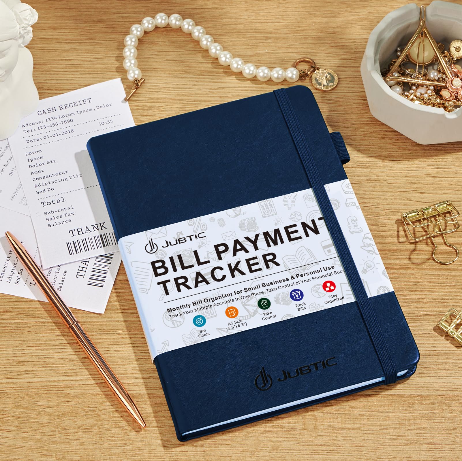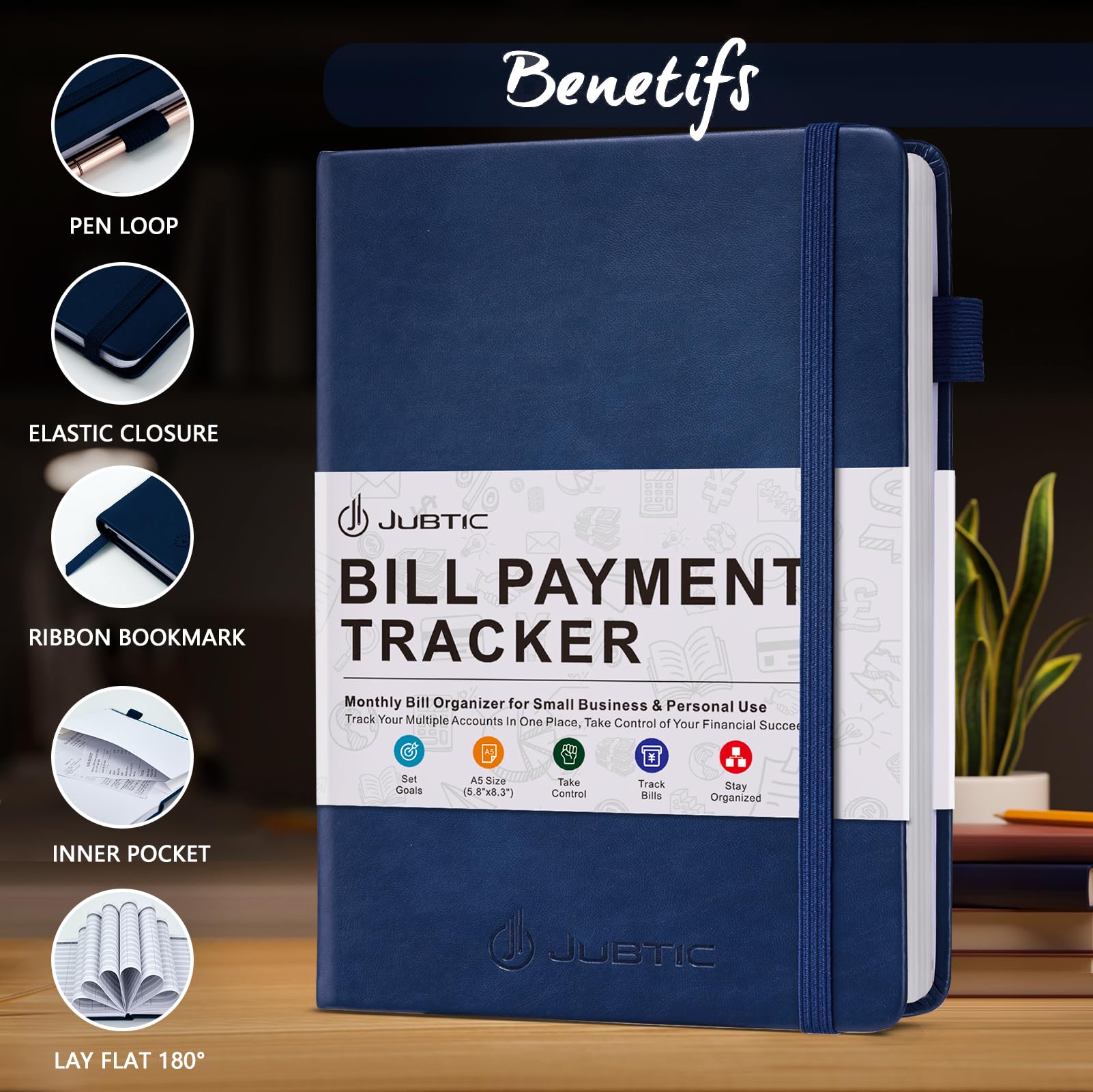 ✓ Practical and Classic Design: This bill payment tracker monthly organizer features a durable vegan leather hardcover and is made of thick no-bleed 100gsm FSC paper for easy writing and reducing ink leakage,bank account ledger book measures 5.8" by 8.3" and convenient to track your business at any time,accounting notebook comes with an elastic band,pen holder,1 bookmark,1 inner pocket at the end storing your checks and receipts in bank, credit card or debit card.