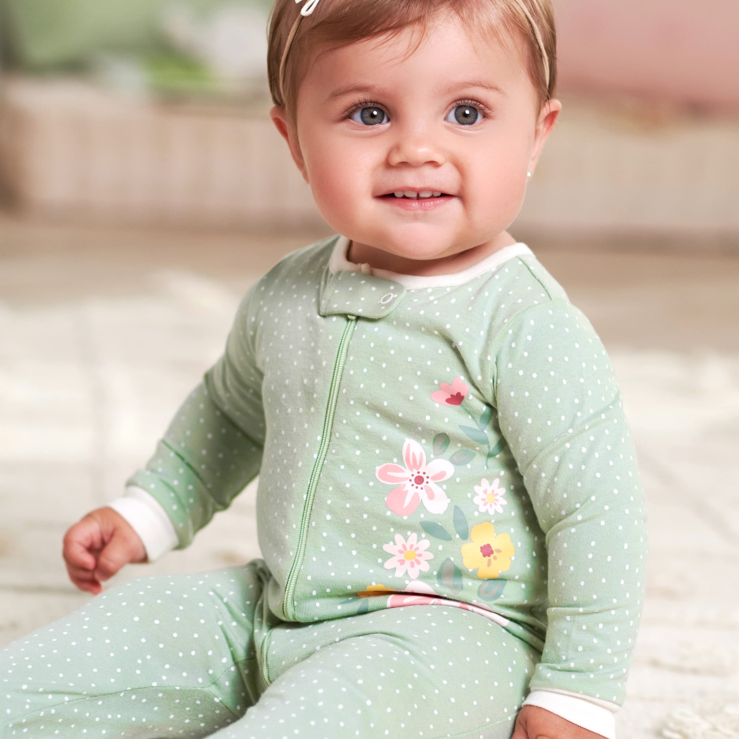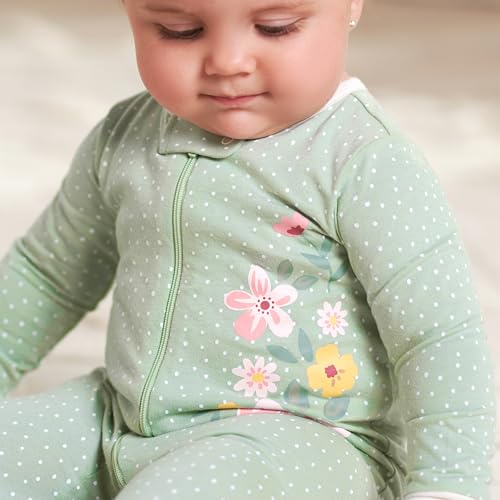 Description Gerber Sleep ‘n Plays are the ultimate footie pajamas baby is sure to love! These soft footies are made with 100% cotton, a comfortable fabric that’s perfectly breathable to prevent irritation against baby’s delicate skin. They’re appropriate to use as newborn footie pajamas as they’re made to comply with all safe sleep standards. They’re also available in sizes all the way up to 6-9M to fit older or larger babies. Each Gerber Sleep n’ Play features a zipper down the front of the outfit to allow for easy and fast diaper changes. This zipper makes the baby sleeper incredibly easy to put on as well as to take off. Atop the zipper is a safety tab with a snap to keep the zipper held in place. This reduces irritation caused by baby’s chin being poked by the zipper. These baby sleepers are footed to add extra warmth which is wonderful for sleepy time as well as if there is a chill in the air. It also means no fooling around with baby socks! These footie pajamas kids will love to wear to bed because of their supreme comfort as well as cute and fun patterns. They’re suitable baby girl sleepers as well as baby boy sleepers. Babies love the comfortable feel and parents love how cute they look! But these Sleep n’ Plays aren’t just for sleep! They’re wonderful comforatble, casual outfits to wear during the day. They allow babies mobility and provide warmth. They’re perfect for play but are cute enough to be worn out on the town! These outfits are perfect to wear on a stroll outside, to the grocery store, to day-care, or to grandma and grandpa’s house! The possibilities are endless! The versatility of these outfits truly gives them a spectacular value that all parents will appreciate. They make an excellent gift for any baby boy or baby girl you know and love! Gerber provides high-quality products that are easy and convenient for parents as well as cute and comfortable for baby. Gerber provides safe products that parents can trust.