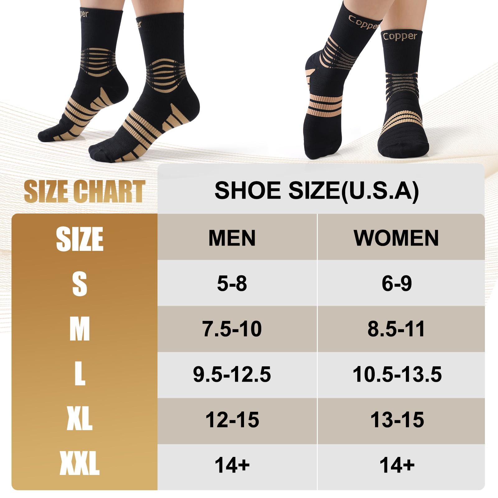 Back To Your LifeāThis copper socks are best for pain relief and injuries recovery, It is perfect for workout and all kinds of sports such as running, yoga, workout. Medical Compression Socks for Women & Men, Running, Nurses, Flight, Travel, Day & Night Comfort Wear. ---Please Check Size Chart!
