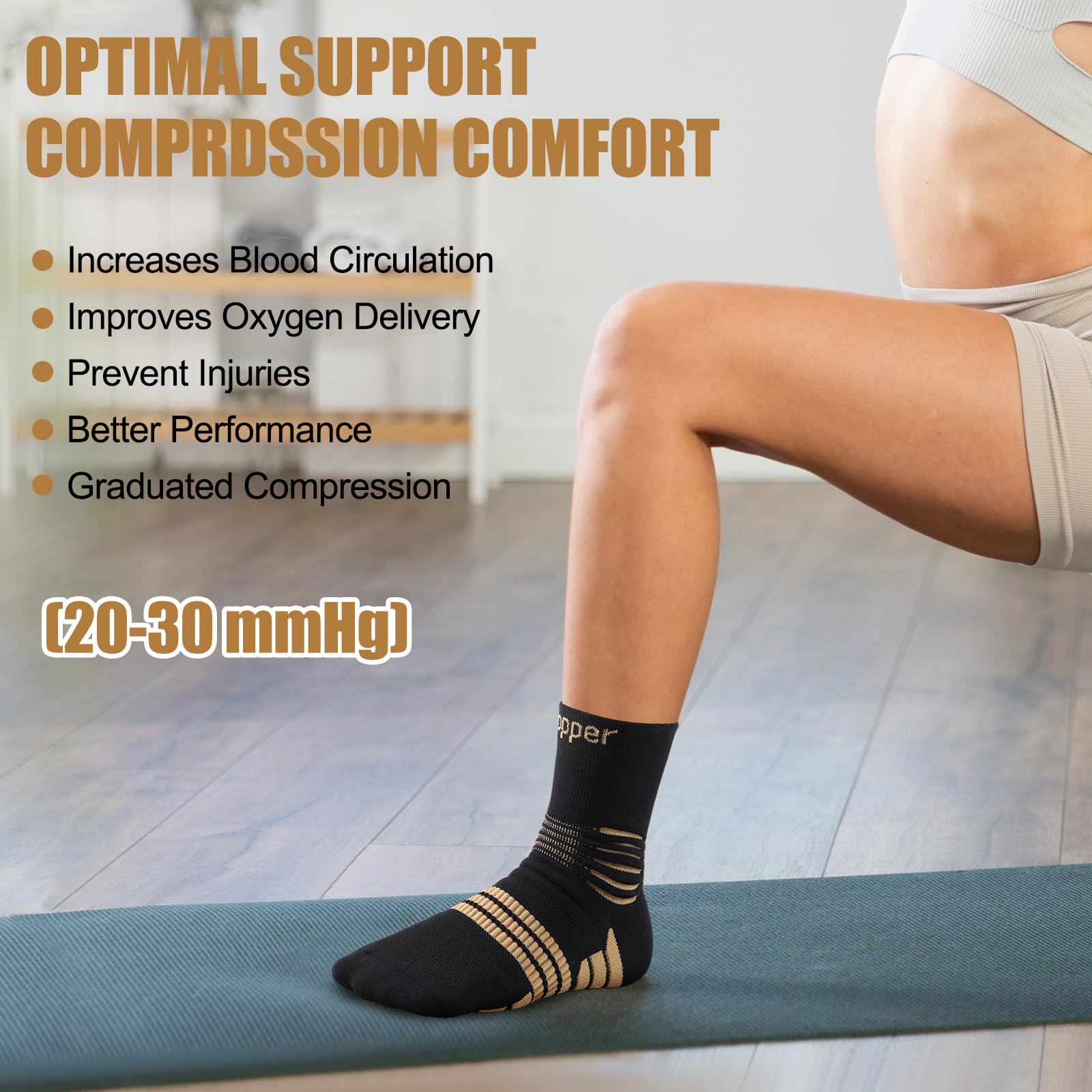 Professional Patented Copper Compression Socks For Better Blood Circulation, Pain Relief and Injuries Recovery. Medical Sleeping Low Cut Socks For Plantar Fasciitis Pain Relief. ELITE Compression Copper Socks for Women & Men, Running, Nurses, Flight, Travel, Day & Night Comfort Wear. 20-30 mmHg