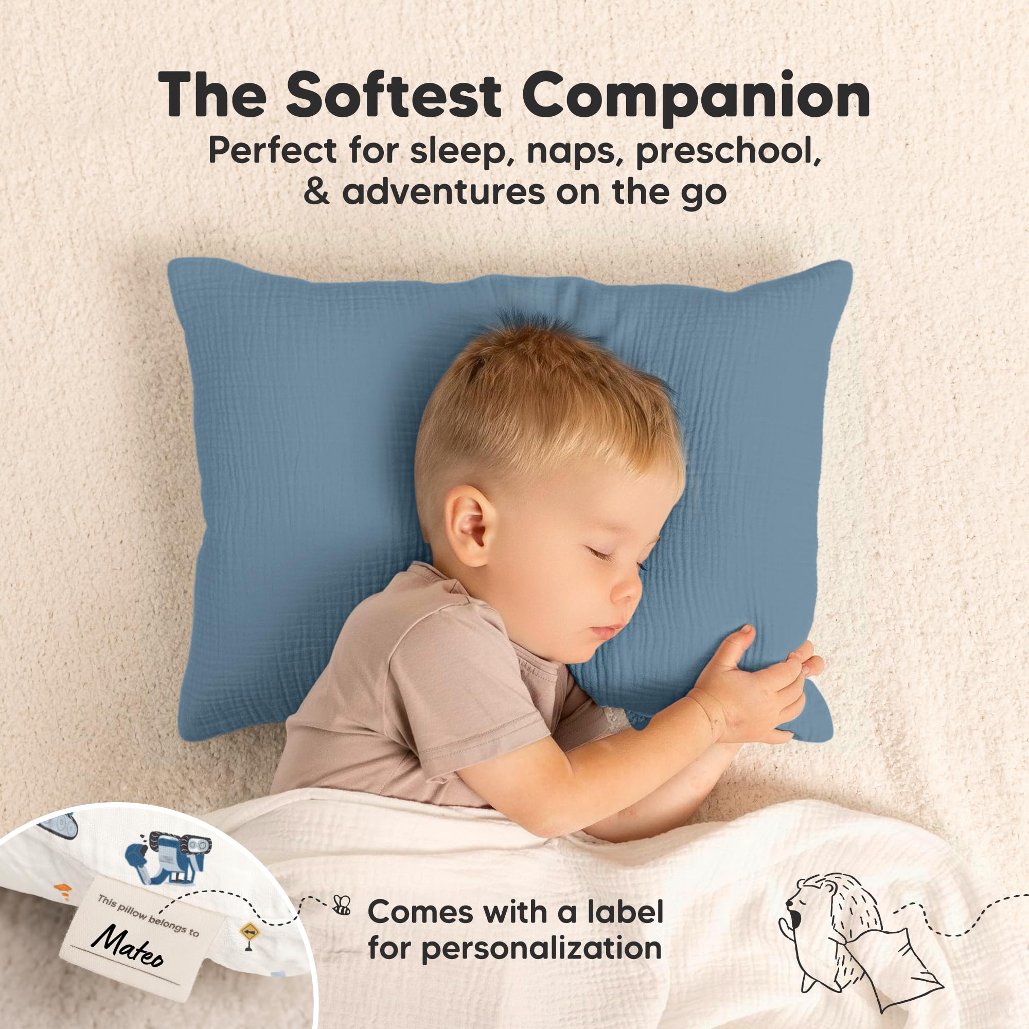 Durable & Washable – A washable pillowcase that becomes softer with every wash. Dryer-friendly and shrink-proof, KeaBabies Lyra Muslin Pillow Cover is a reliable small pillow case for everyday use. Comes with a tag for your child/kids' name.