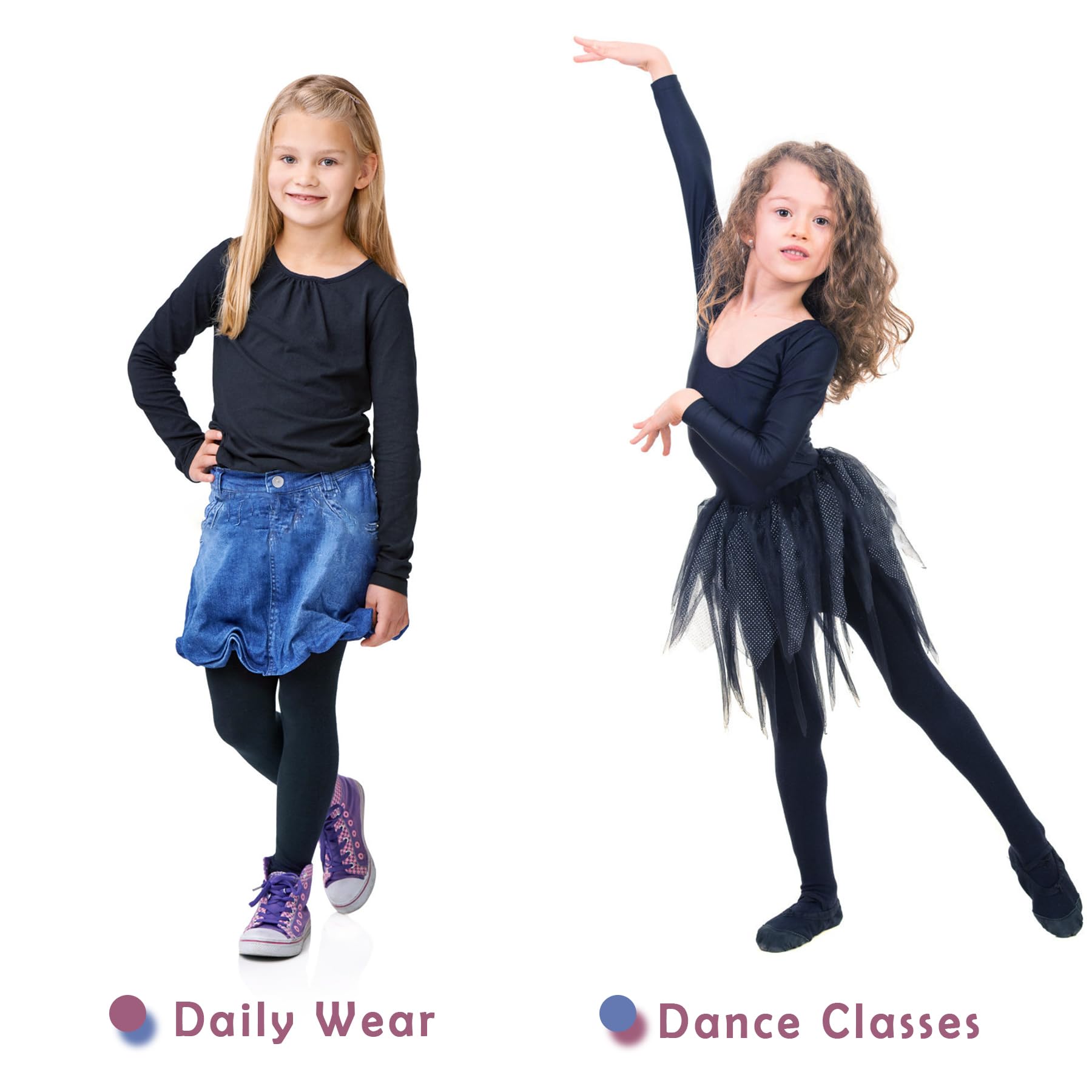 【Occasion】Girls Dance tights are suitable for many occasions, such as ballet classes, gymnastics, festivals, campus activities, etc. It can be worn with school uniform, dress, sweater, shorts, boots, etc. As kids' birthday gifts, children's Day gifts and Christmas gifts, tights are a very good choice.