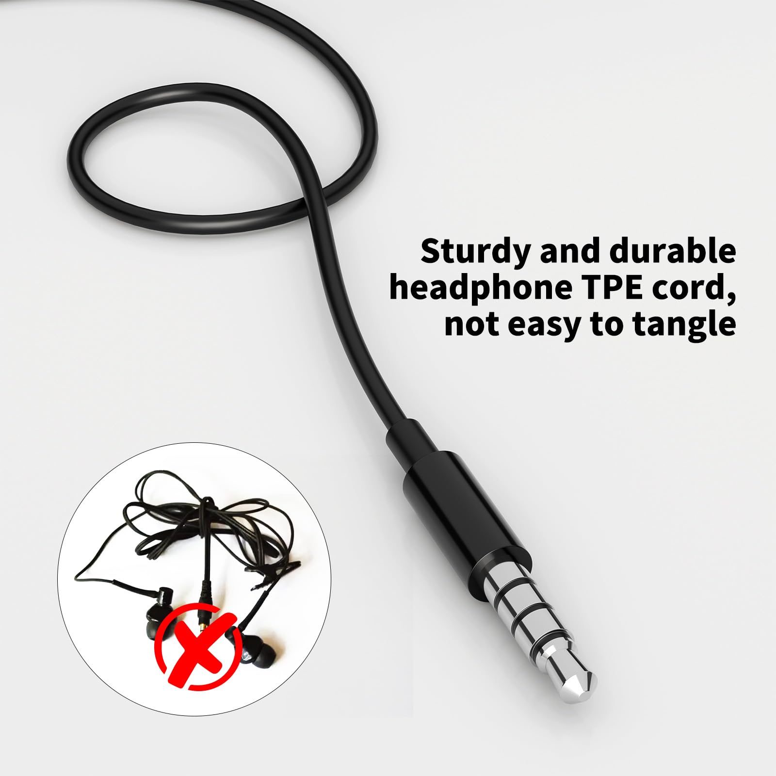 Wired Headphones with Microphone - In-line control function, you can pause/play, volume up/down, answer/ hang up phone call and remote control design allows you to answer or reject phone calls without picking up the phone when driving a car, adjust volume, skip songs when listening to music. Convenient to use on the go. 𝙋𝙡𝙚𝙖𝙨𝙚 𝙣𝙤𝙩𝙚: In-line control is not available for IOS devices