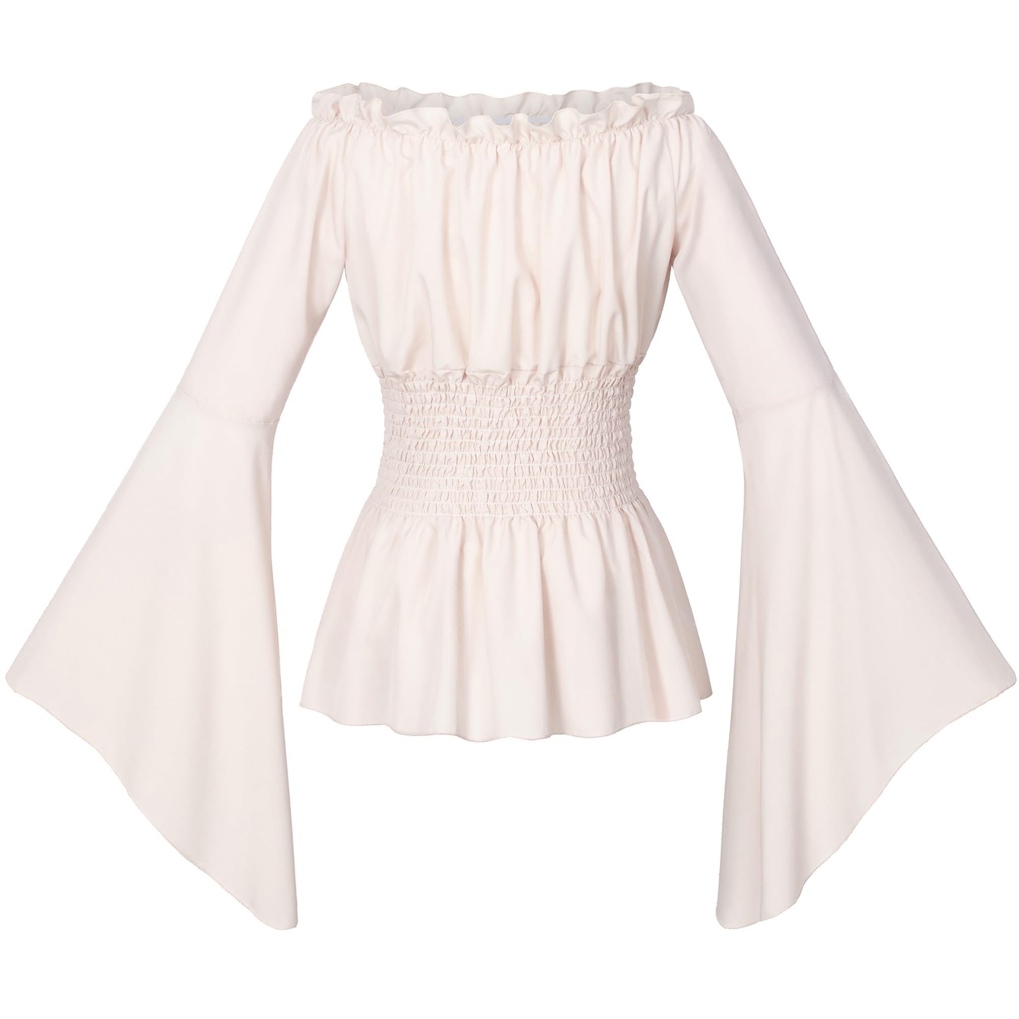 Description TIPS:the key parameter of the top:Bust.High-elastic waist style pirate shirt. Package includes: Womens victorian boho blouse top *1. Renaissance blouse off shoulder trumpet long sleeve tops is easily match with different outfits. Can show off your charming curves, hide your stomach fat. Womens long sleeve pirate renaissance victorian peasant gothic ruffle smocked waist boho pirate shirt blouse cosplay costumes Size Information: Size S:Length 22.8"----Bust 33.5-35.4"----Sleeve 22.0" Size M:Length 22.8"----Bust 35.8-37.4"----Sleeve 22.0" Size L:Length 23.2"----Bust 37.8-39.4"----Sleeve 22.4" Size XL:Length 23.2"----Bust 39.8-41.3"----Sleeve 22.4" Size 2XL:Length 23.6"----Bust 41.7-43.3"----Sleeve 22.8" Size 3XL:Length 23.6"----Bust 43.7-45.3"----Sleeve 22.8" Plus size 5XL:Length 24.4"----Bust 46.5-49.2"----Sleeve 23.2"