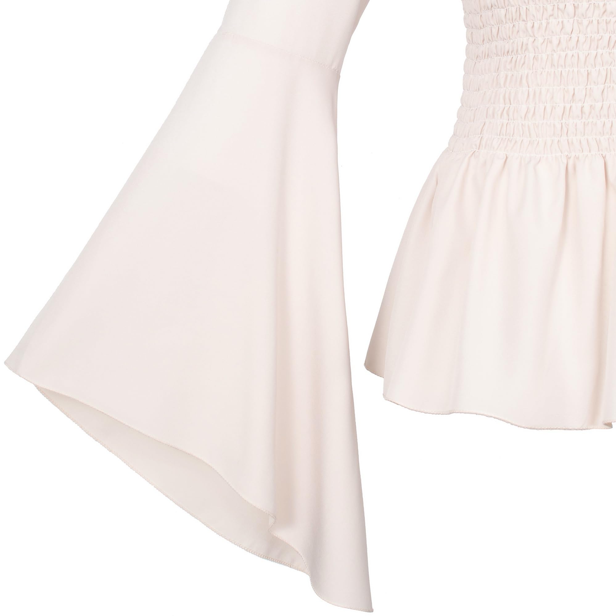 Elegant long sleeves blouse top shirt with off shoulder design,lace ruffles trim neckline,pleated body, high waisted with elastic details,bell sleeves.