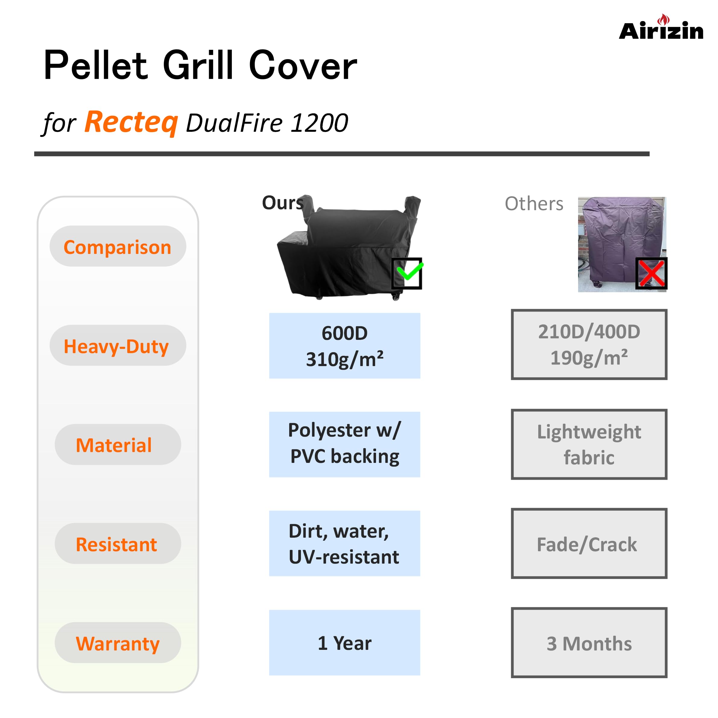 FITS: The Premium Custom Fit for Recteq Dual Fire 1200 pellet grill cover.