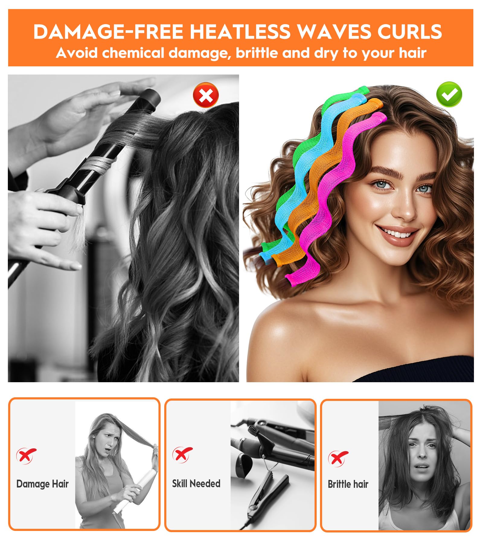 Heatless Waves Without Damage For Short Medium Hair : Heatless Waves Hair Curlers Create soft, natural looking waves without heat or hot tools, helping reduce dryness and breakage while supporting a more gentle daily styling routine for short medium hair