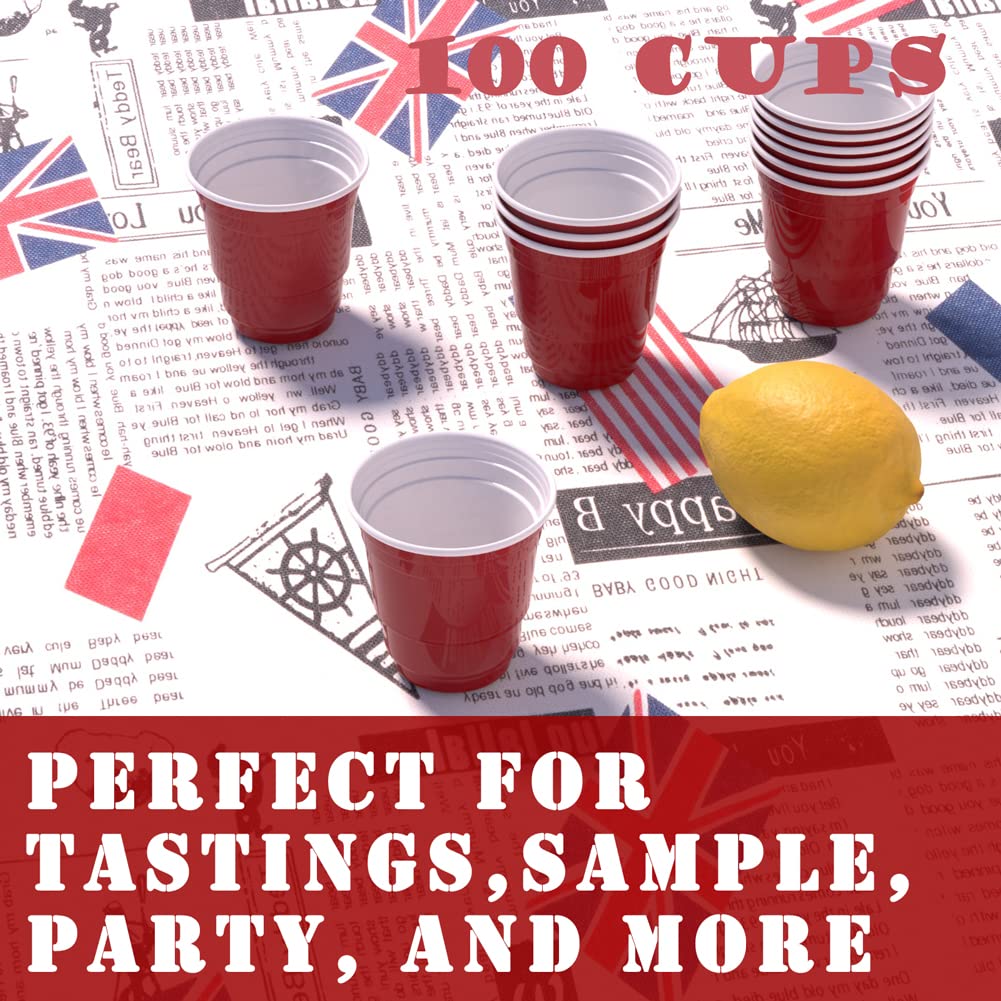 Includes 100 cups in bright red, each with a capacity of 2 ounces