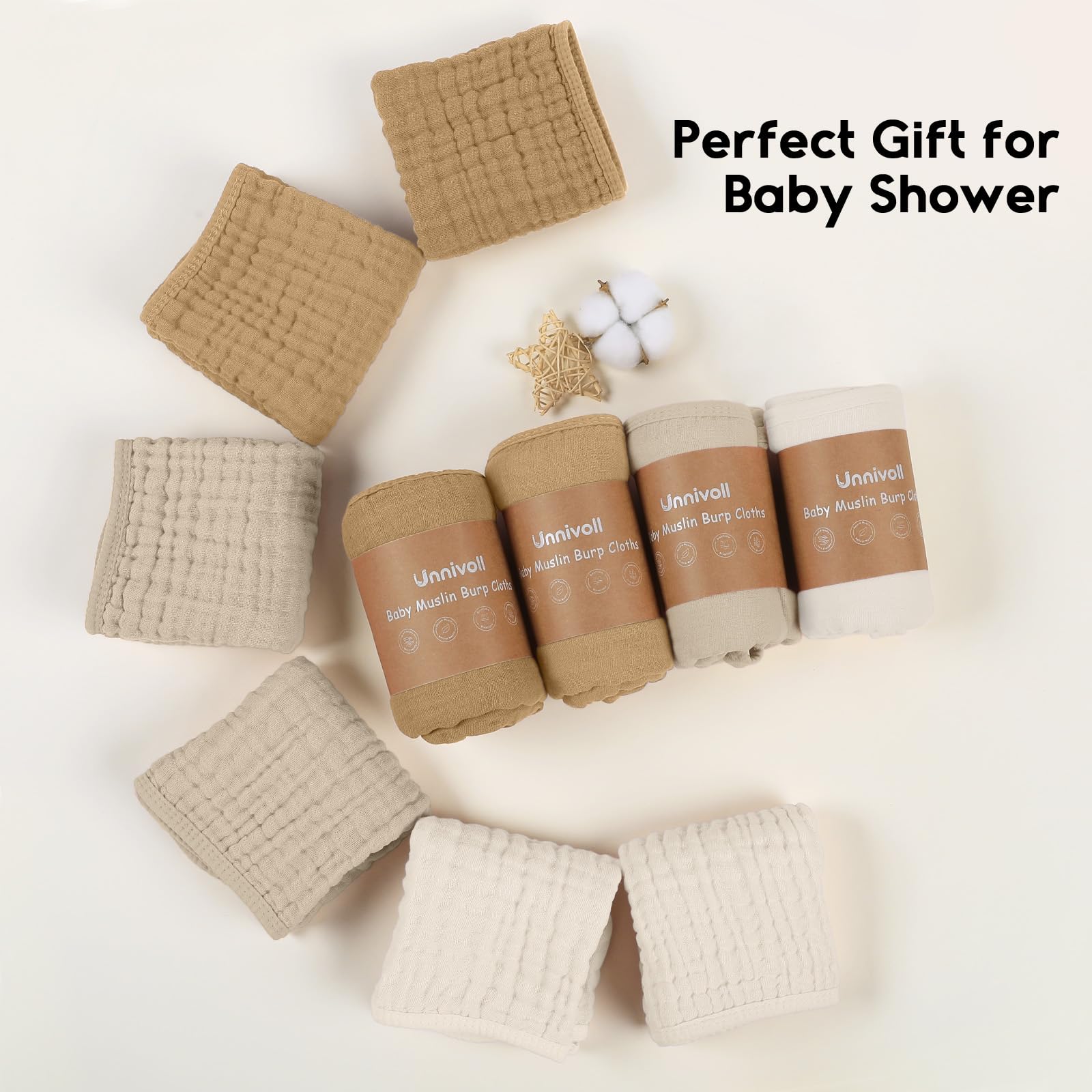 Safety Comes First: Made from 100% premium quality cotton,Unnivoll muslin burp cloths is certified to meet Consumer Product Safety Commission (CPSC) guidelines, eliminate all potential risks and provide a soft, breathable, cloud like comfort for your little one. The natural muslin is also suitable for all skin types including sensitive and delicate skin, perfectly use on the face, hand and body.