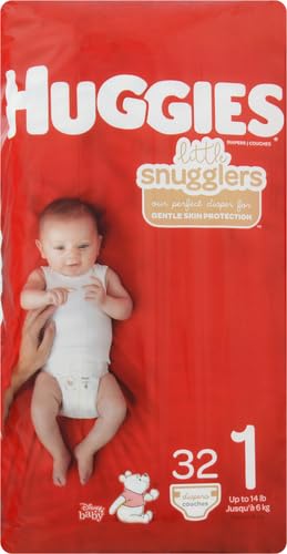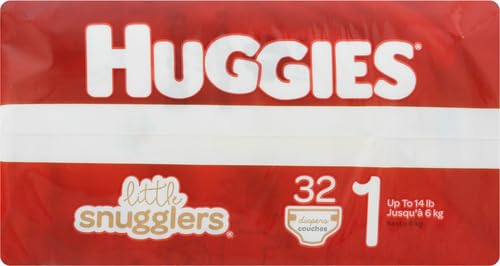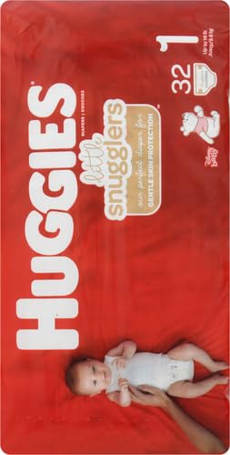 Huggies Size 1 Diapers: 32 Little Snugglers Baby Diapers, size 1 (8-14 lbs), packaging may vary