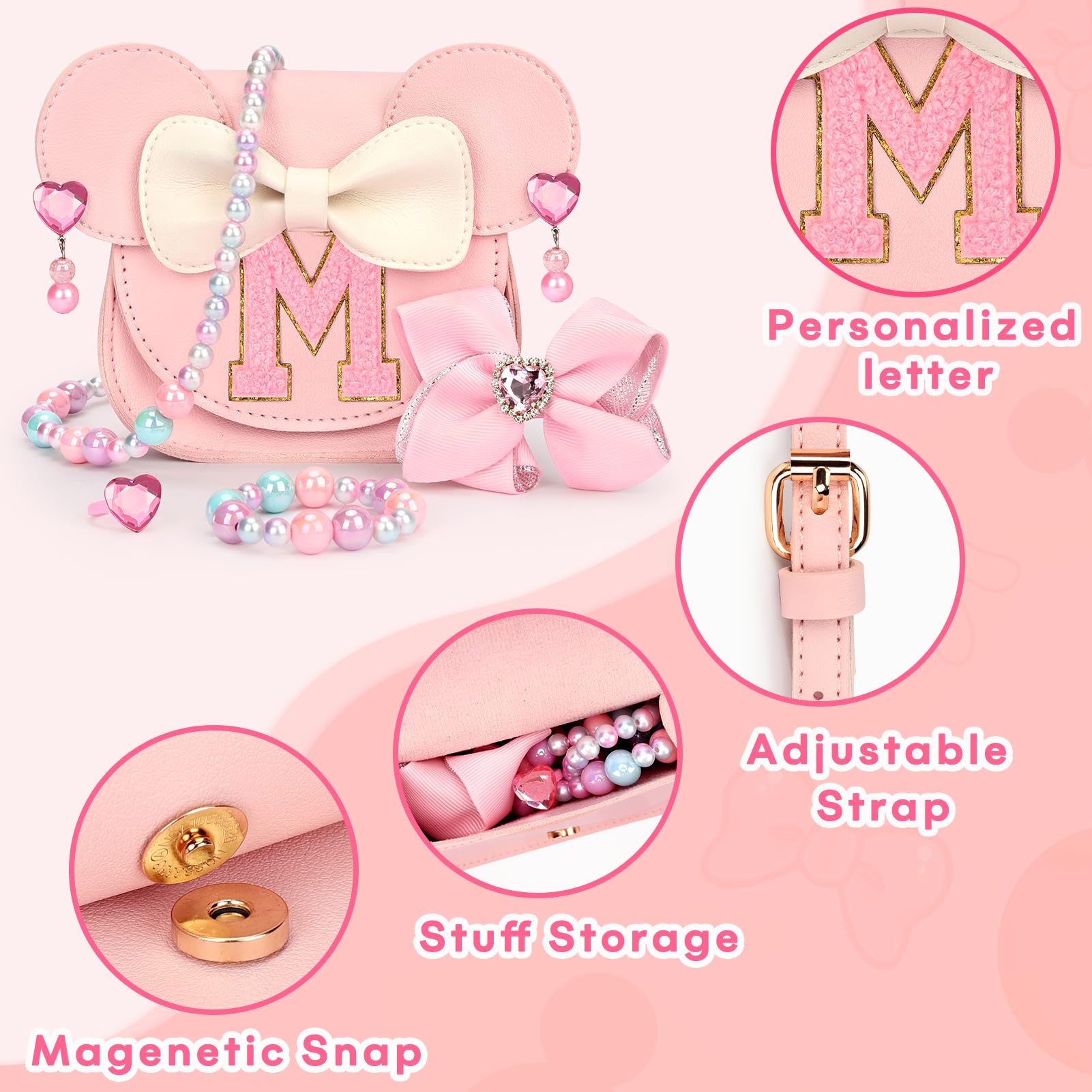 Cute Shape: Patched with a letter,This little girl purse would be a personalized birthday gifts for 6 year old girls or under. Kids would love its mouse ears and bow. Tip: Please select the letter you want in the STYLE