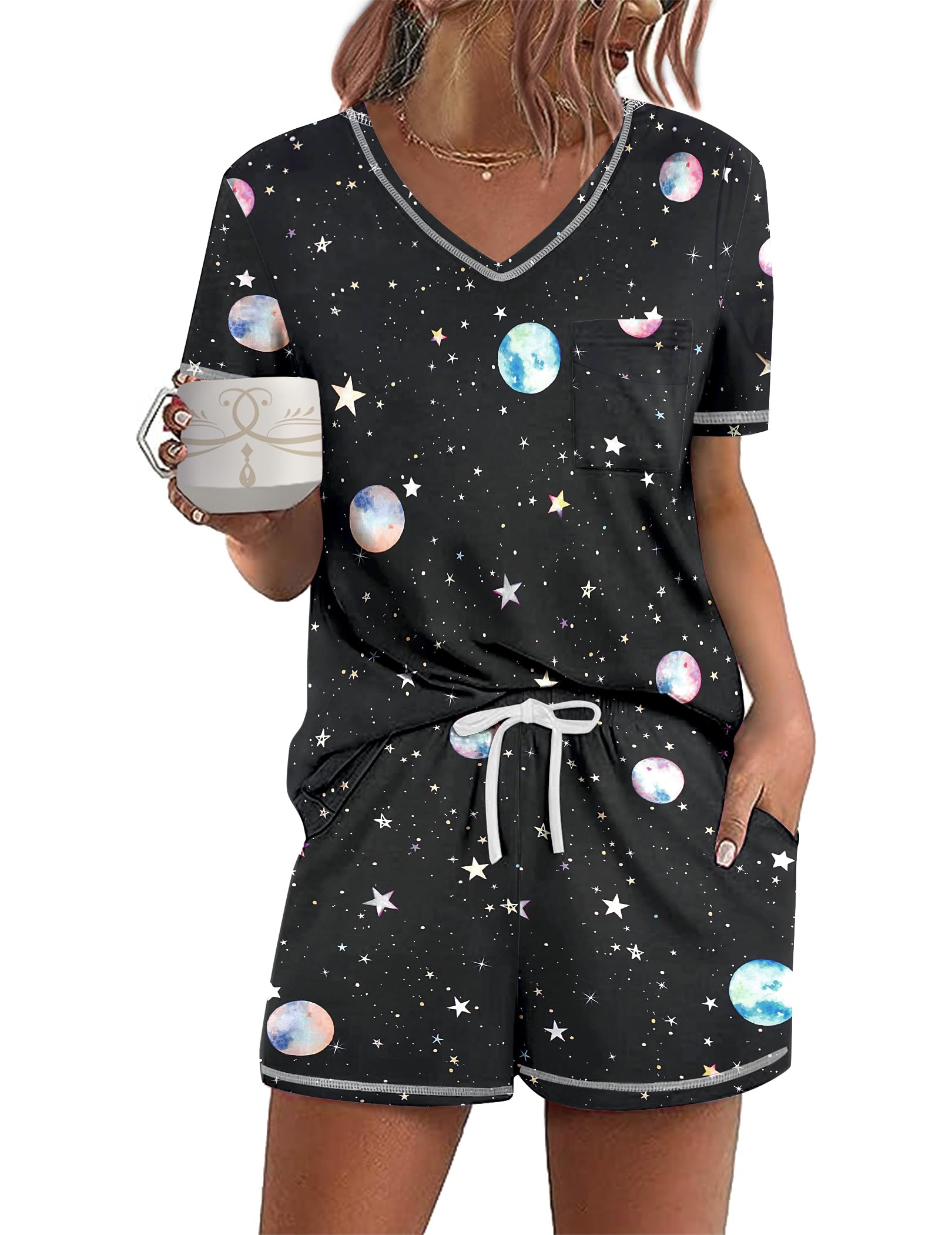 Two Piece Pajama Set: Sleepwear with tops and shorts has a loose fit for added comfort. Extra soft, comfy, and breathable sleepwear set for bedtime