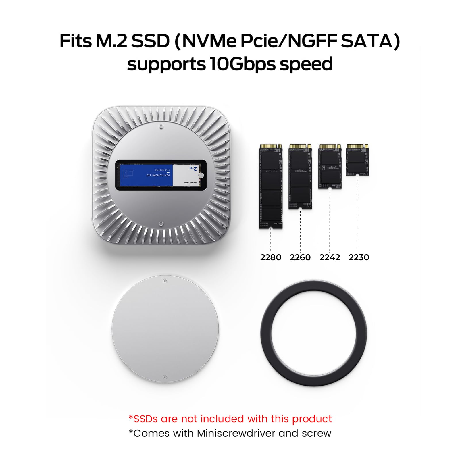 【Support 8TB M.2 NVME/SATA Enclosure】This Mac Mini docking station is equipped with a built-in Hard Drive enclosure, capable of running M.2 NVME/SATA, Supports up to 8TB and most SSD sizes (M.2 2230/2242/2260/2280). NOTE: Connect the extra USB-C charging port (back of the dock) for adequate power supply when using hard drivers in case of disconnects.
