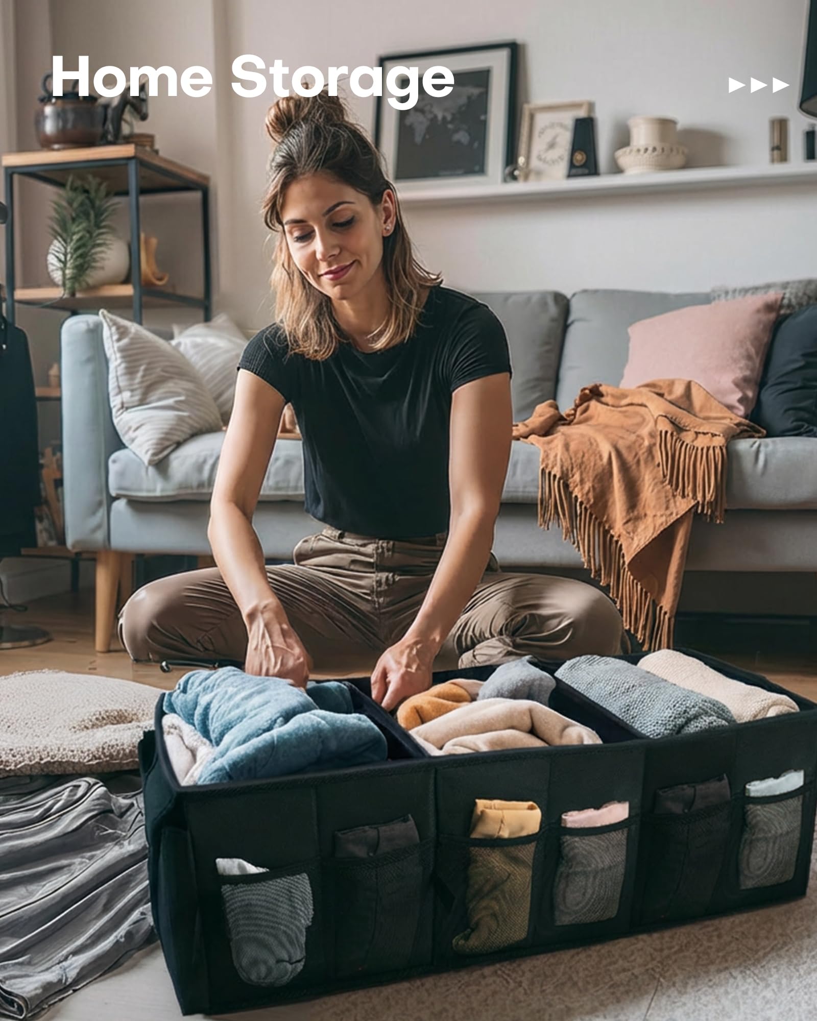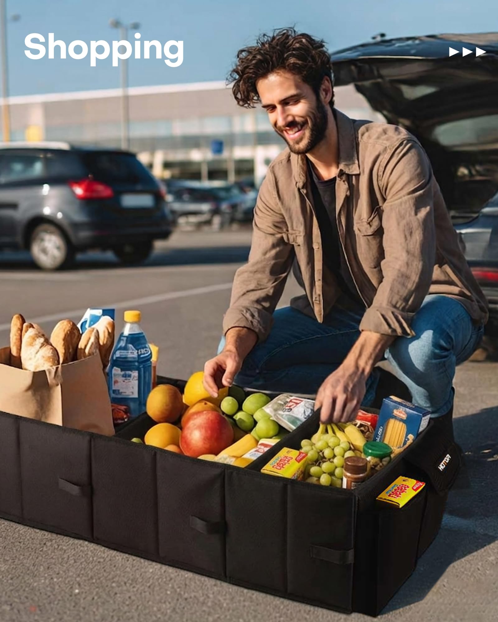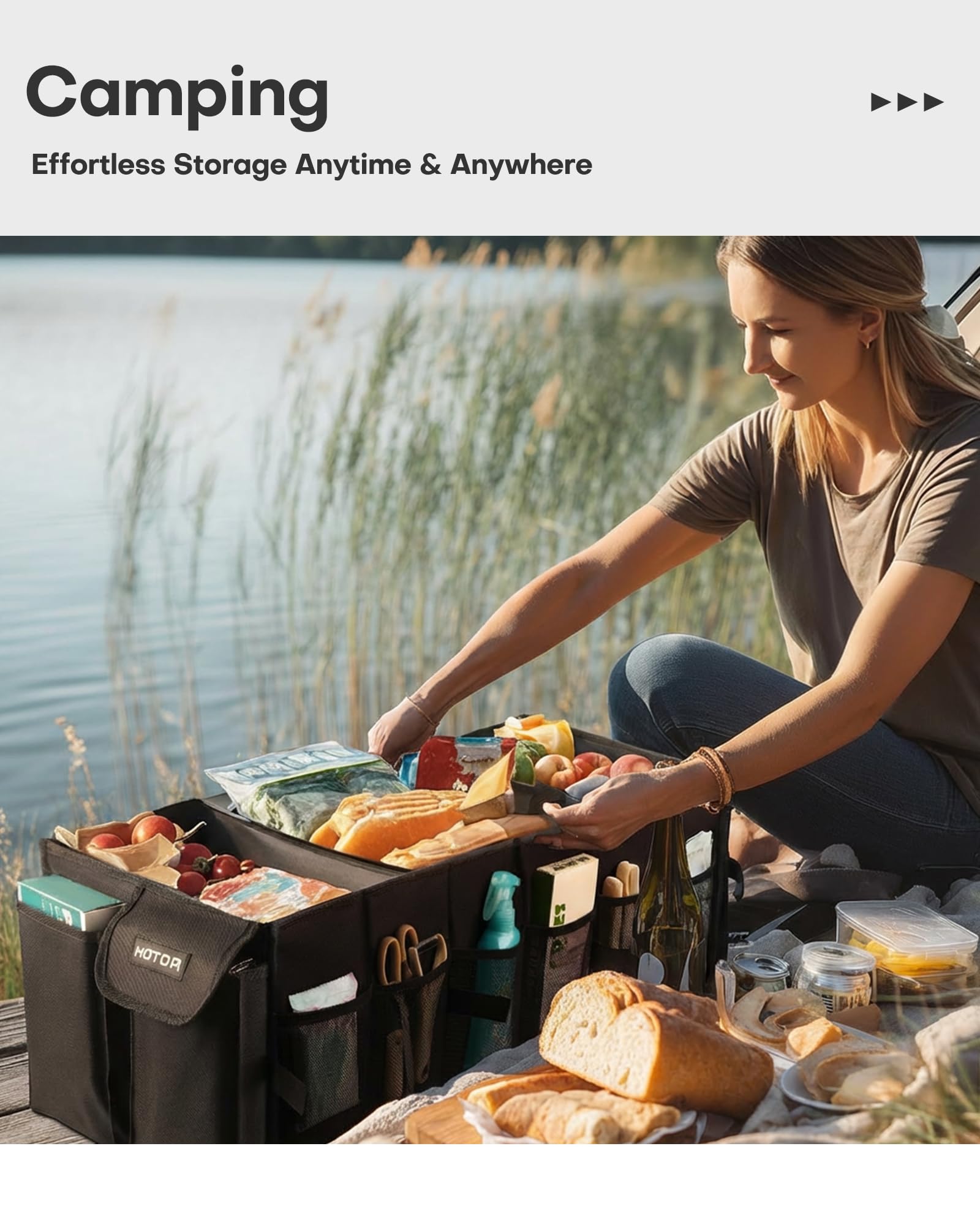 PORTABLE & SPACE-SAVING: When not in use, simply fold the SUV trunk organizer flat with the Velcro strips. The collapsible design is perfect for freeing up trunk space or storing the organizer neatly at home. An essential item for tidy travels.