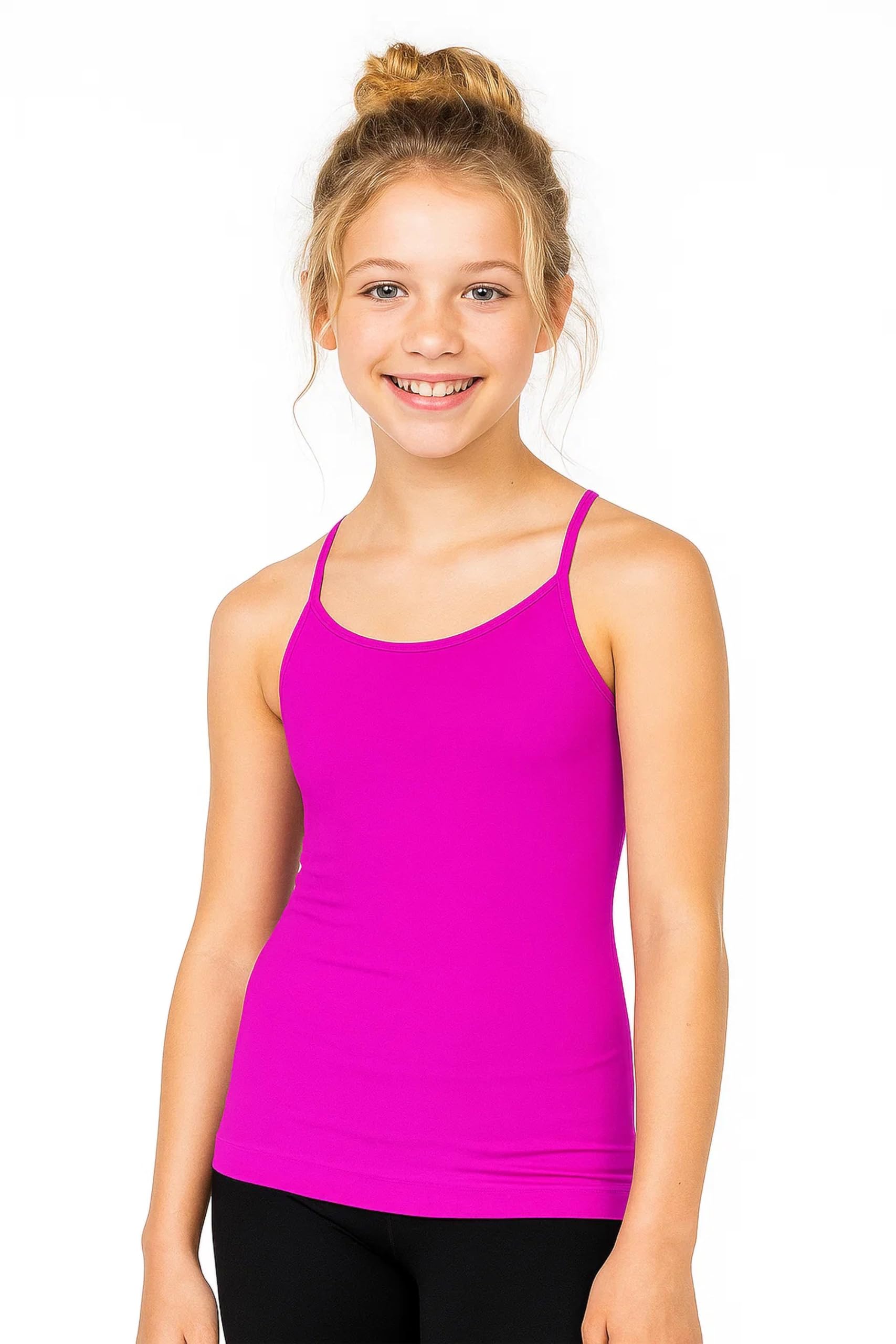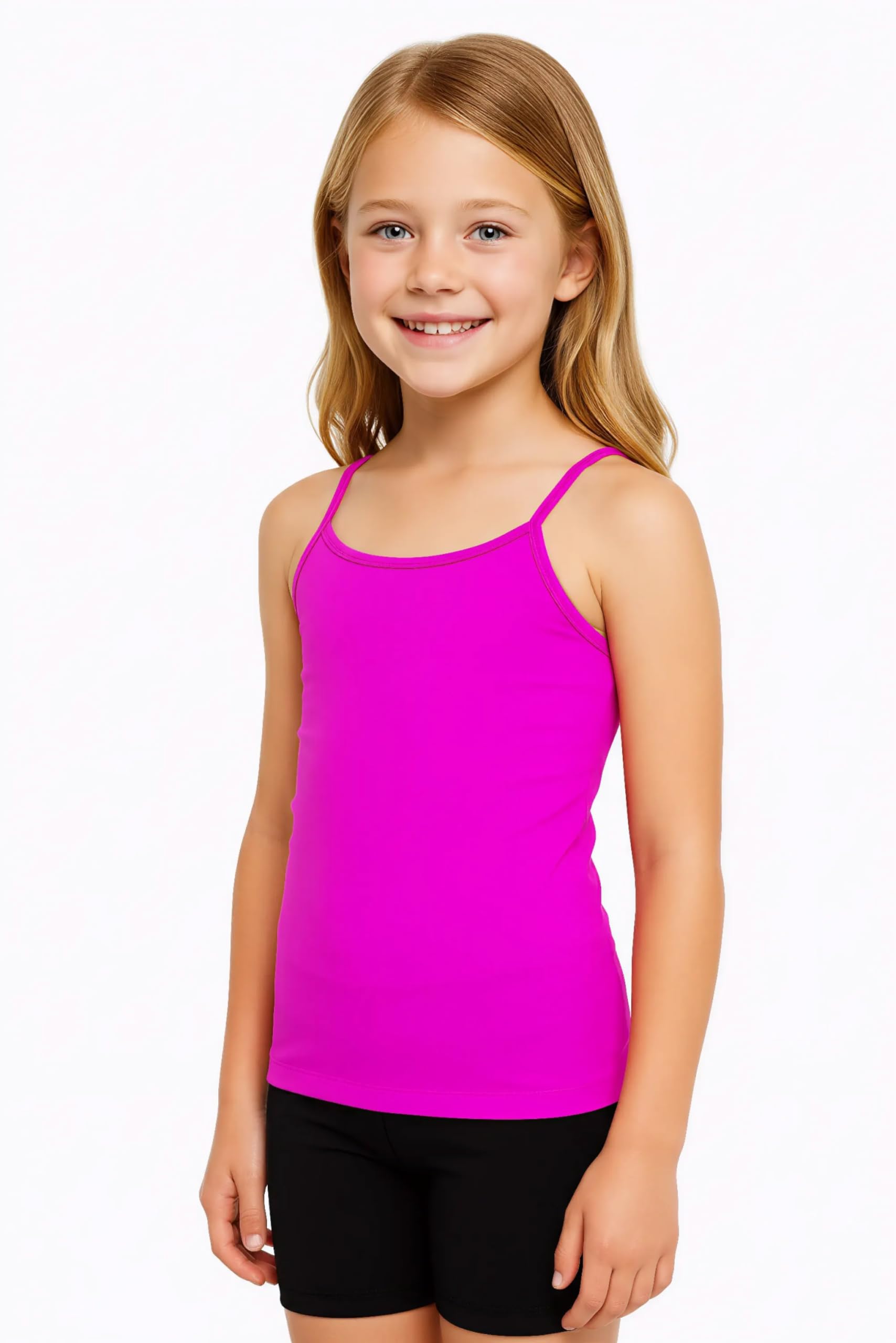 FASHION DESIGN - This affordable, high-quality camisole is a must-have fashion basic for stylish girls. With a classic crewneck and sleeveless spaghetti straps, this versatile camisole can be paired with anything. The sleeveless design ensures that your kids’ arms won’t be restricted in any way. This slim fitting camisole hugs your upper body and goes on your body like a second skin, which ensures that it doesn’t show when layered underneath other tops.