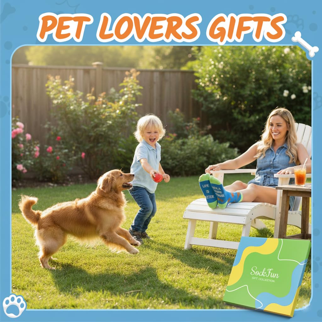 DOG GIFTS FOR DOG LOVERS - Looking for fun and unique gifts for dog lovers? Check out our silly dog-themed socks! Perfect for birthdays, Mother's Day, Father's Day, Valentine's Day, Christmas, and more.