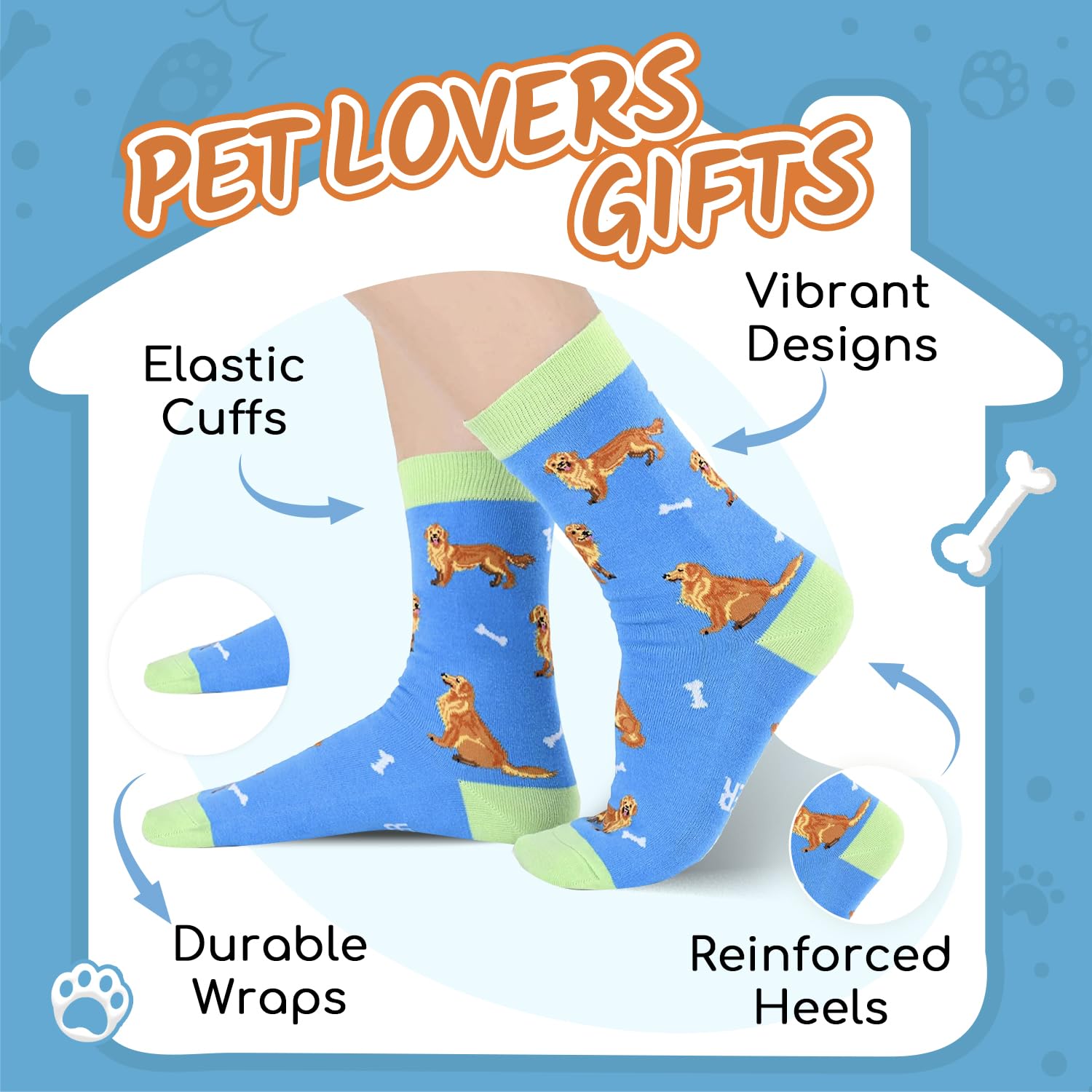 GOLDEN RETRIEVER WOEMN & MEN GIFTS - Our novelty socks are perfect gifts for Golden Retriever lovers! They make funny gifts for dog lovers and are ideal for dog moms and dads.