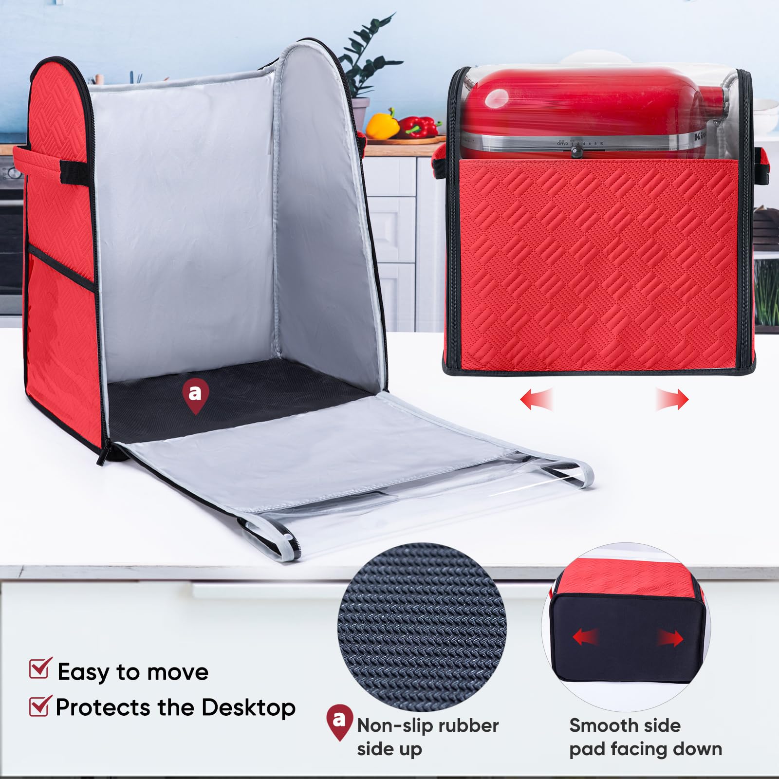 ✅ Complete Protection for Kitchen Appliances: Keep your KitchenA id stand mixer and attachments dust-free and clean. This heavy-duty quilted cover offers full coverage — including the base — perfect for protecting your kitchen aid accessories, bowls, and tools from dirt, spills, and ants.