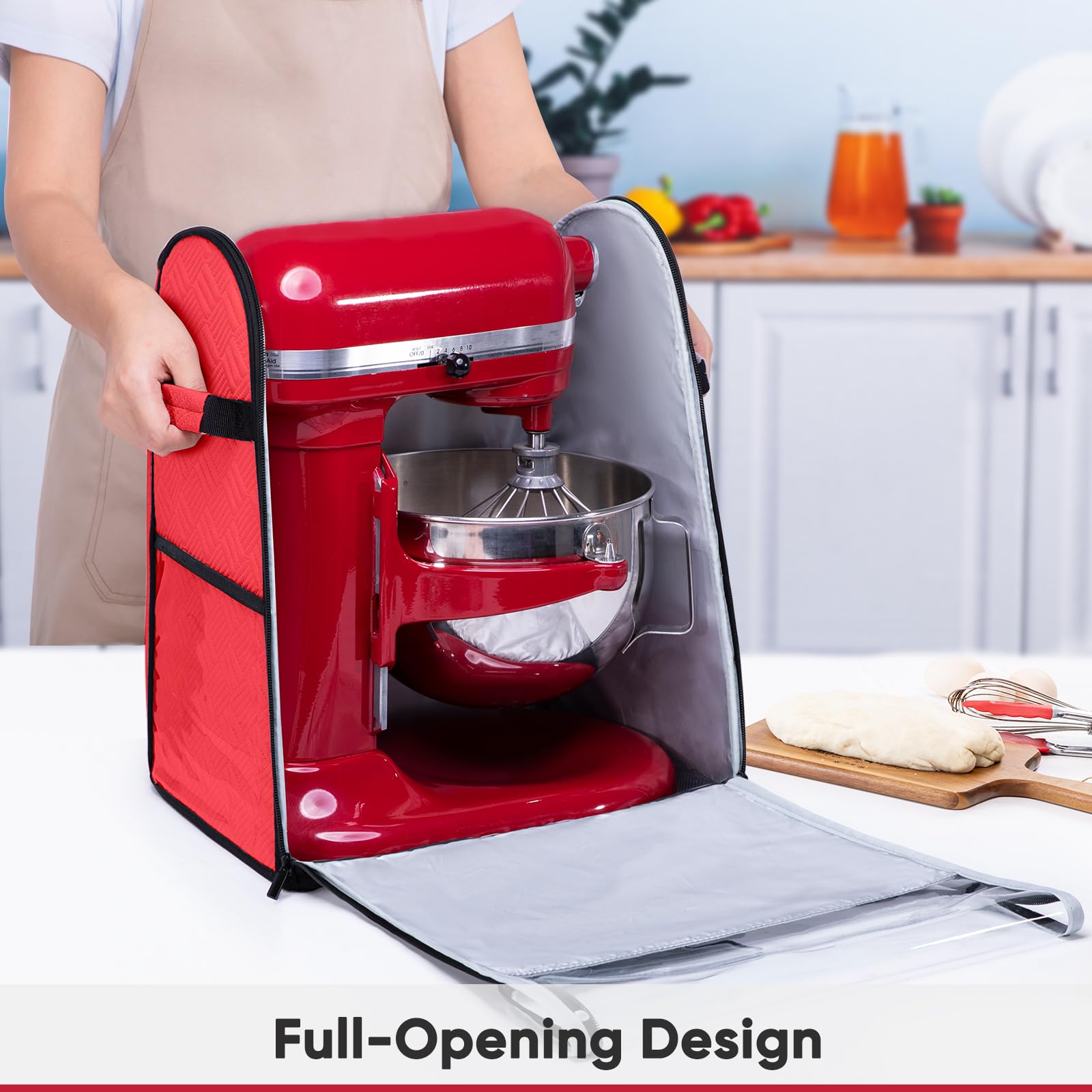 ✅ Convenient Full-Open Design: Designed with top and front zippers for easy access. You can quickly store or remove your KitchenAd stand mixer and attachments, such as dough hooks, whisks, or the ice cream maker attachment.