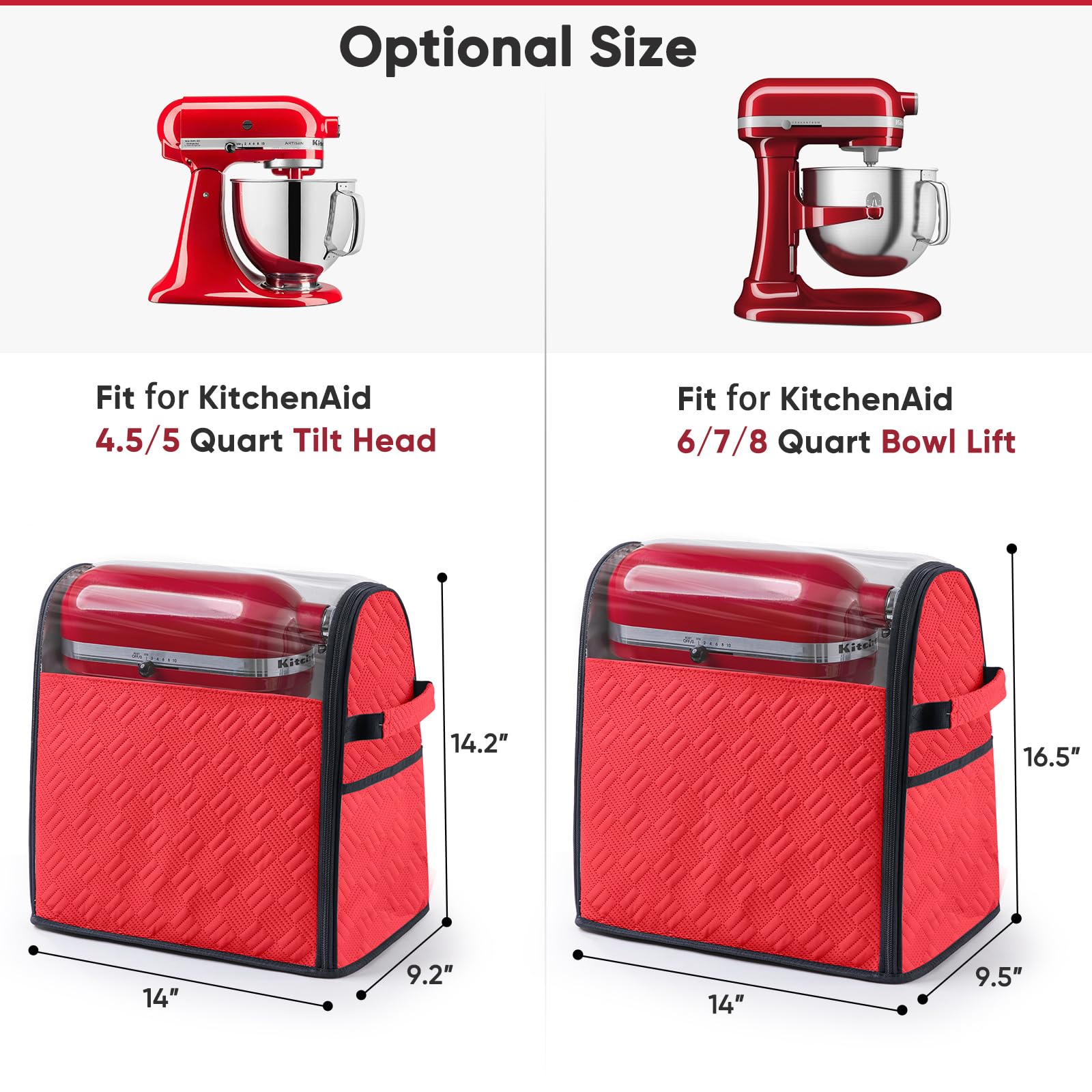 ✅ Fits for Multiple KitchenAid Models ( Available in 2 sizes) Small: Fits for KitchenAid 4.5–5 Qt Tilt-Head Mixers Large: Fits for KitchenAid 6–8 Qt Bowl-Lift Mixers (including 7 Qt and 8 Qt). Perfect for use with KitchenAd accessories, pasta maker attachments, meat grinder attachments, and more.