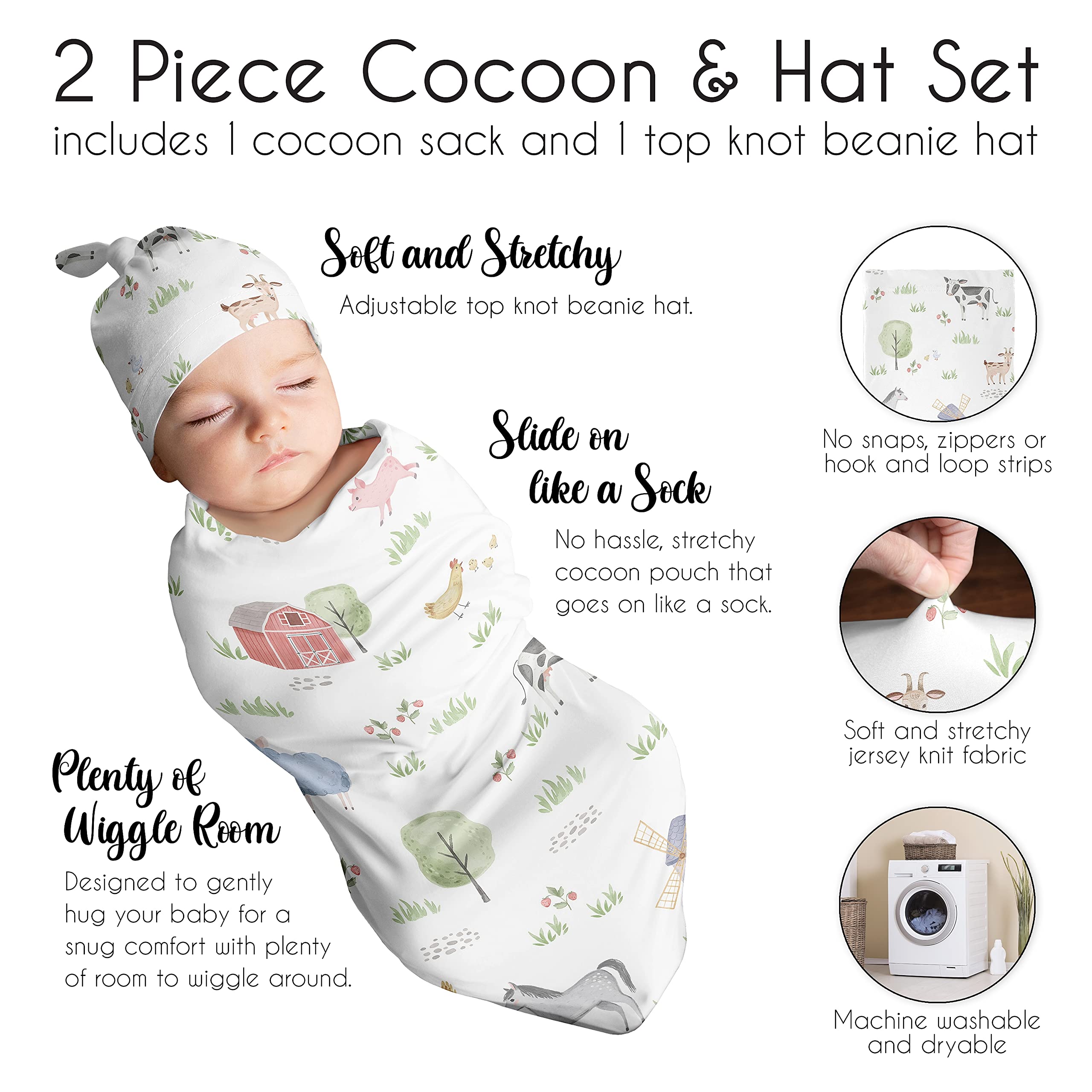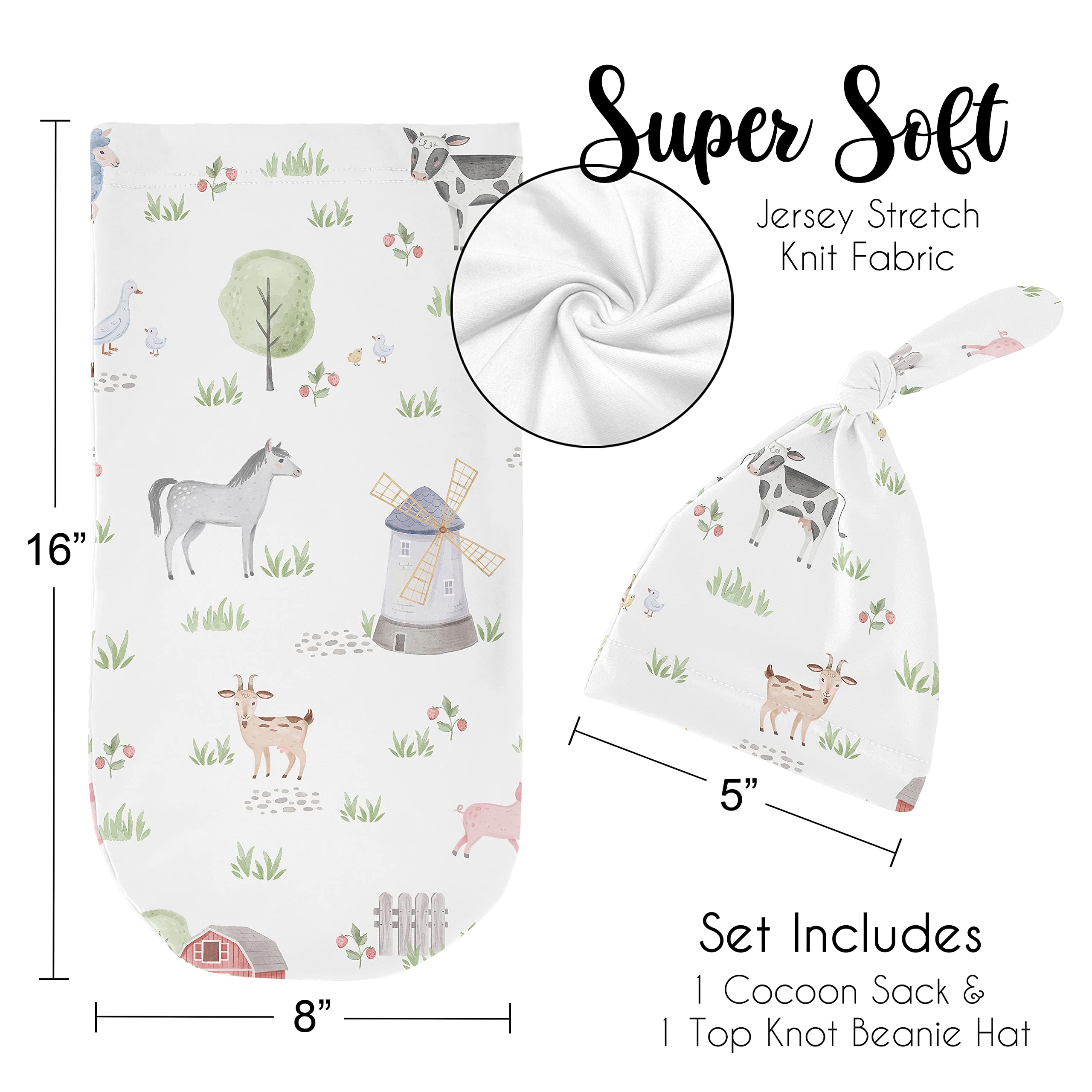 Set Includes (1) Cocoon Sleep Sack and (1) Top Knot Beanie Hat