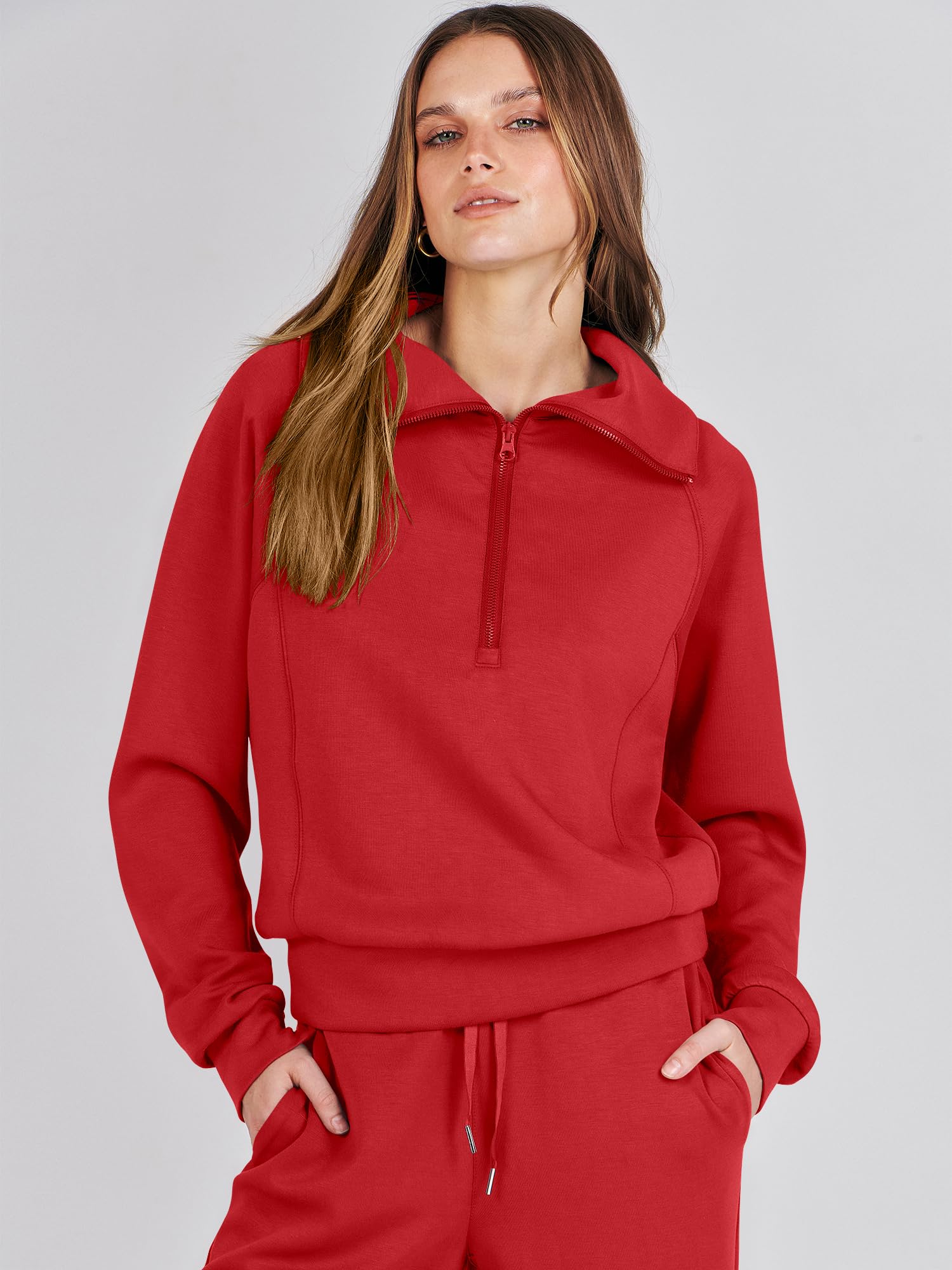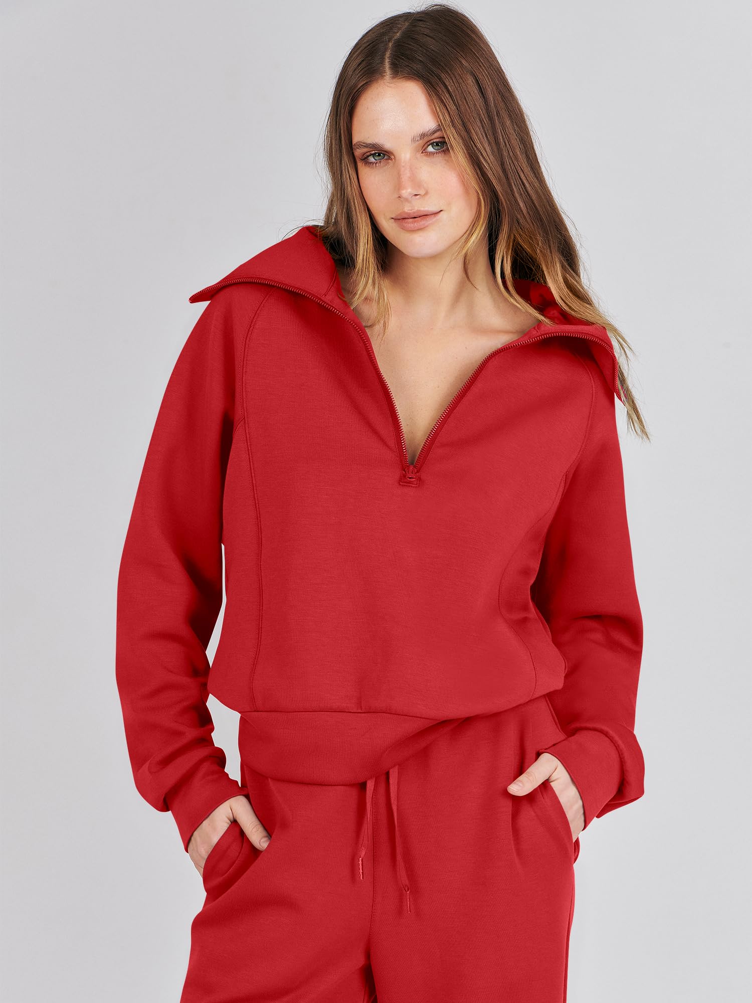 Features - This Sweatsuit Set featured half zip long sleeve oversized sweatshirt & high waist drawstring wide leg sweatpant for a 2 piece tracksuit set. Matching set sweatpants 2 piece sweatsuit are great for daily life, gym, sport, running, active, lounge, travel, beach, fitness and home.