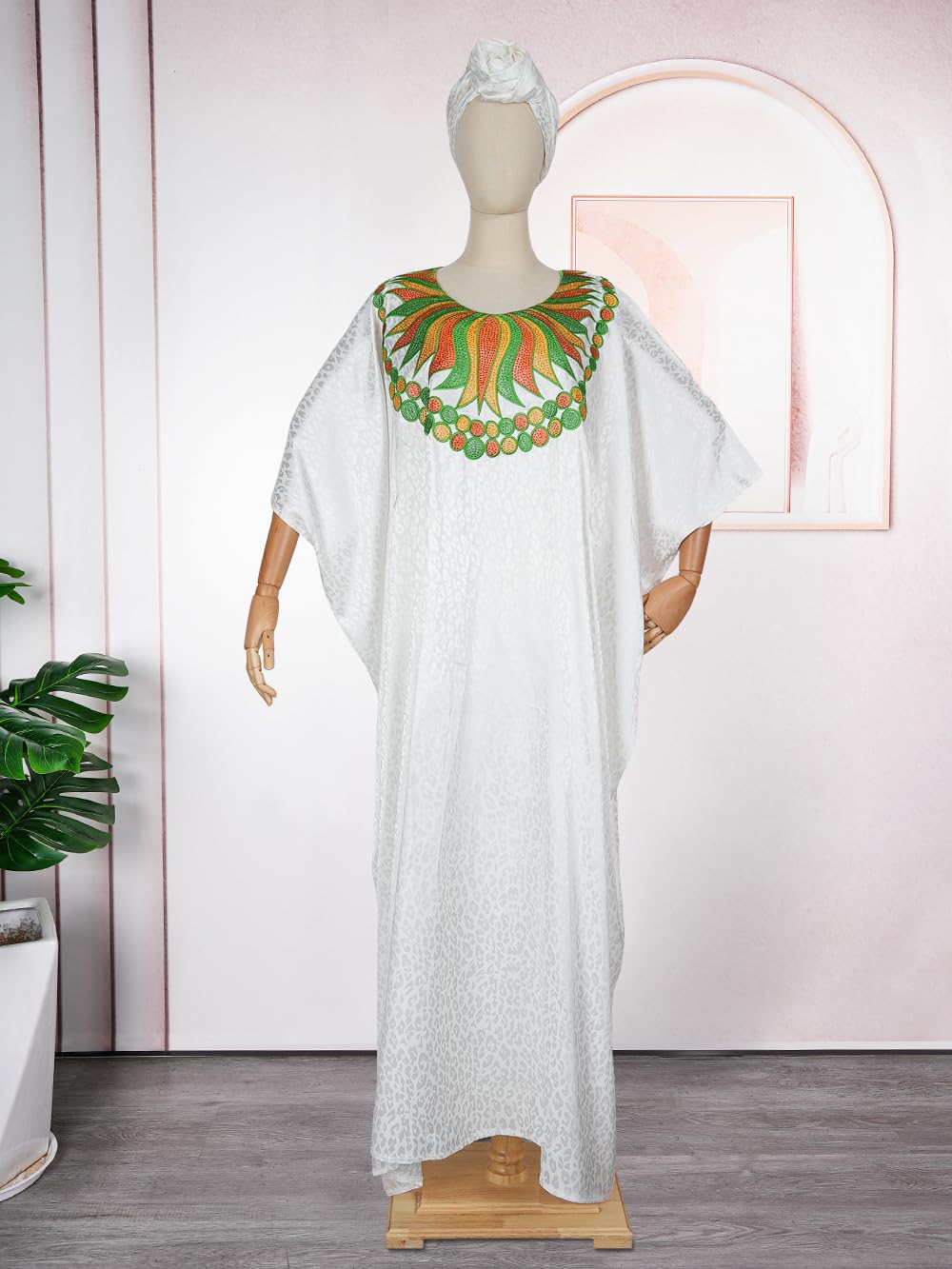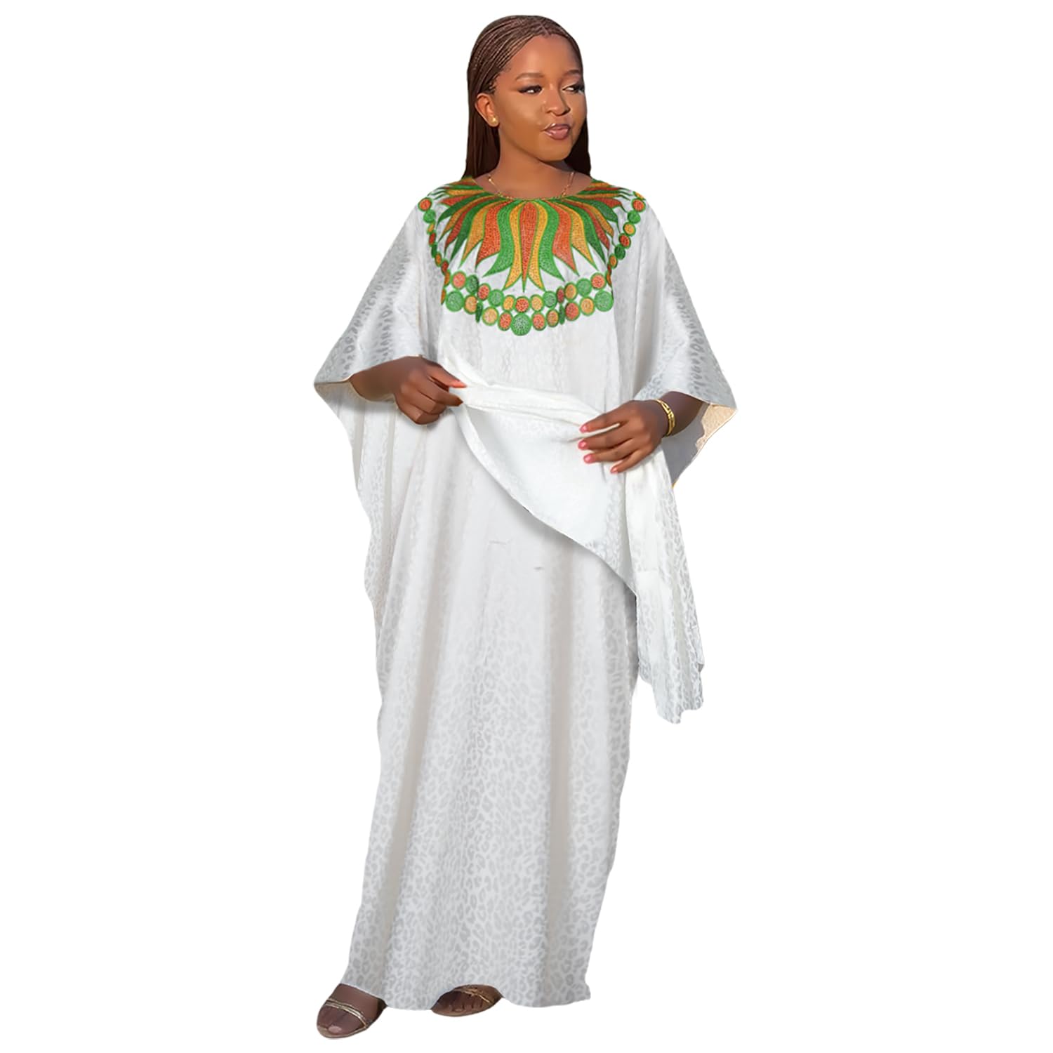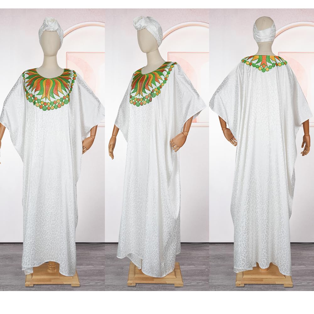 Style:traditional floarl embrodiery kaftan dress stylish rhinestone white party gown elegant