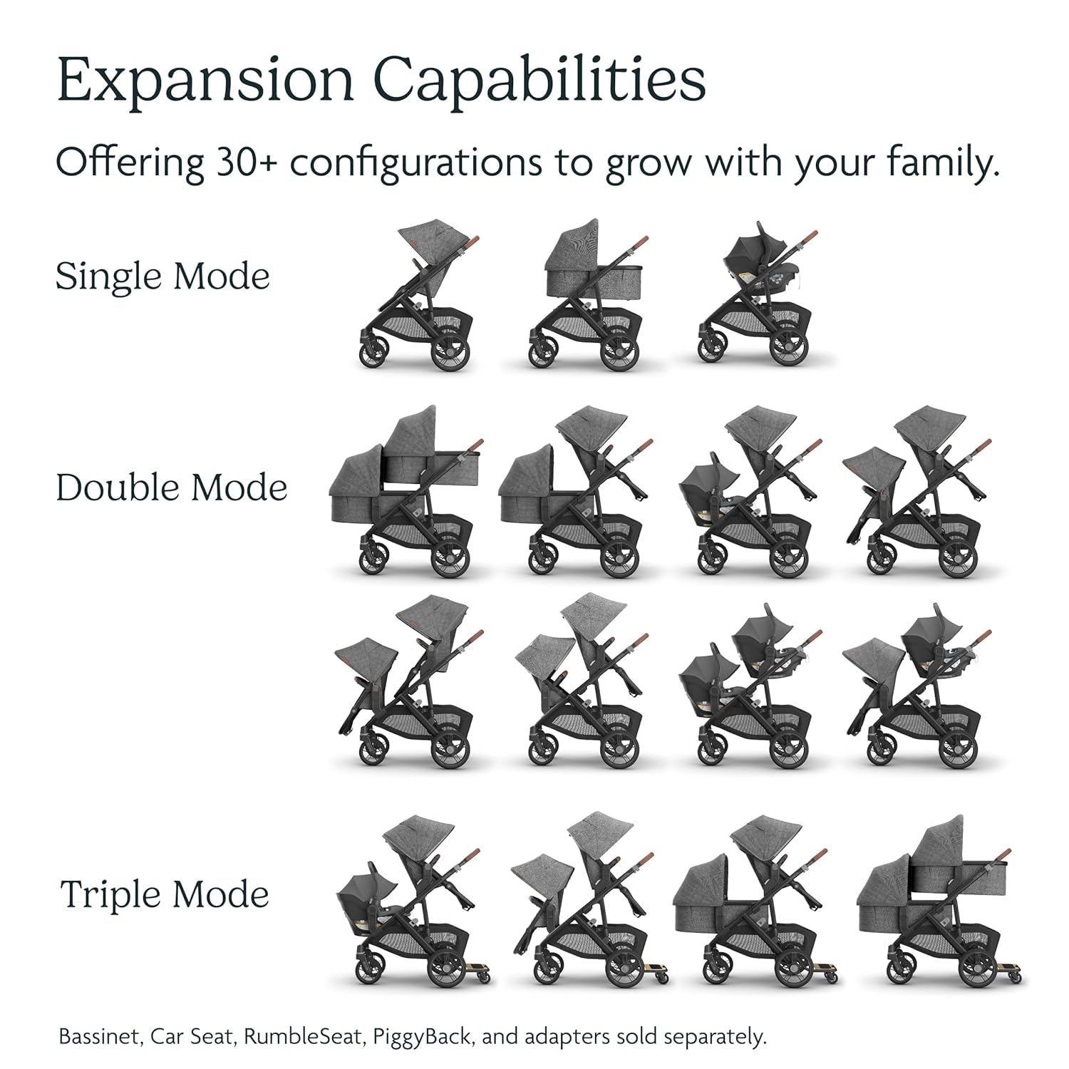 DESIGNED TO FIT EVERY FAMILY: An upgrade to the trusted Vista V2, the Vista V3 stroller offers 30+ configurations, evolving from a single to double stroller and accommodating up to three children from newborn through toddlerhood — the ultimate stroller for growing families