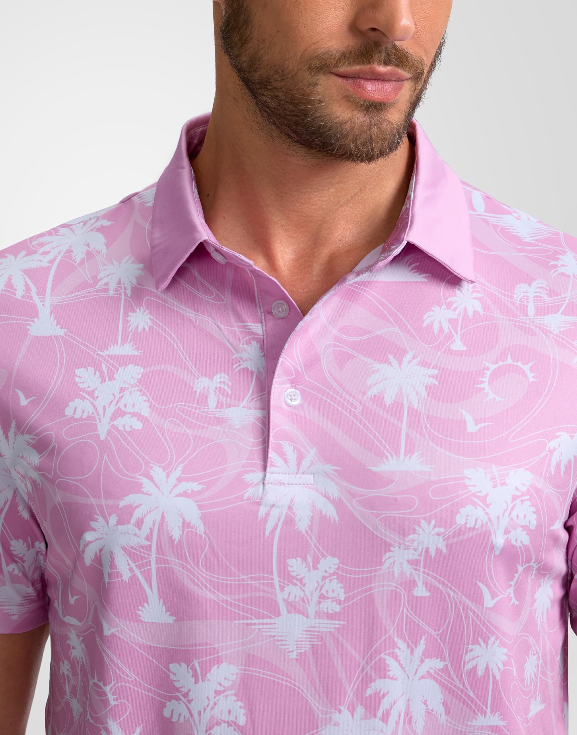 Obla Mens Golf Polo Shirts Short Sleeve Dry Fit Casual Print Collared Golf Shirts Wicking for Men(Pink Coconut Beach_L)