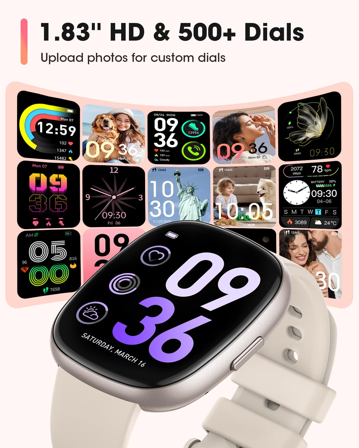 24-HOUR HEALTH ACTIVITY TRACKER: Prioritize your well-being with smart watches for men continuous health monitoring. Smart watches for women track your Heart Rate, Blood Oxygen levels(SpO2) and Sleep patterns (deep sleep, light sleep, REM analysis, get a better sleep habit by viewing your sleep data)around the clock. Take charge of your wellbeing and make informed decisions for a healthier lifestyle