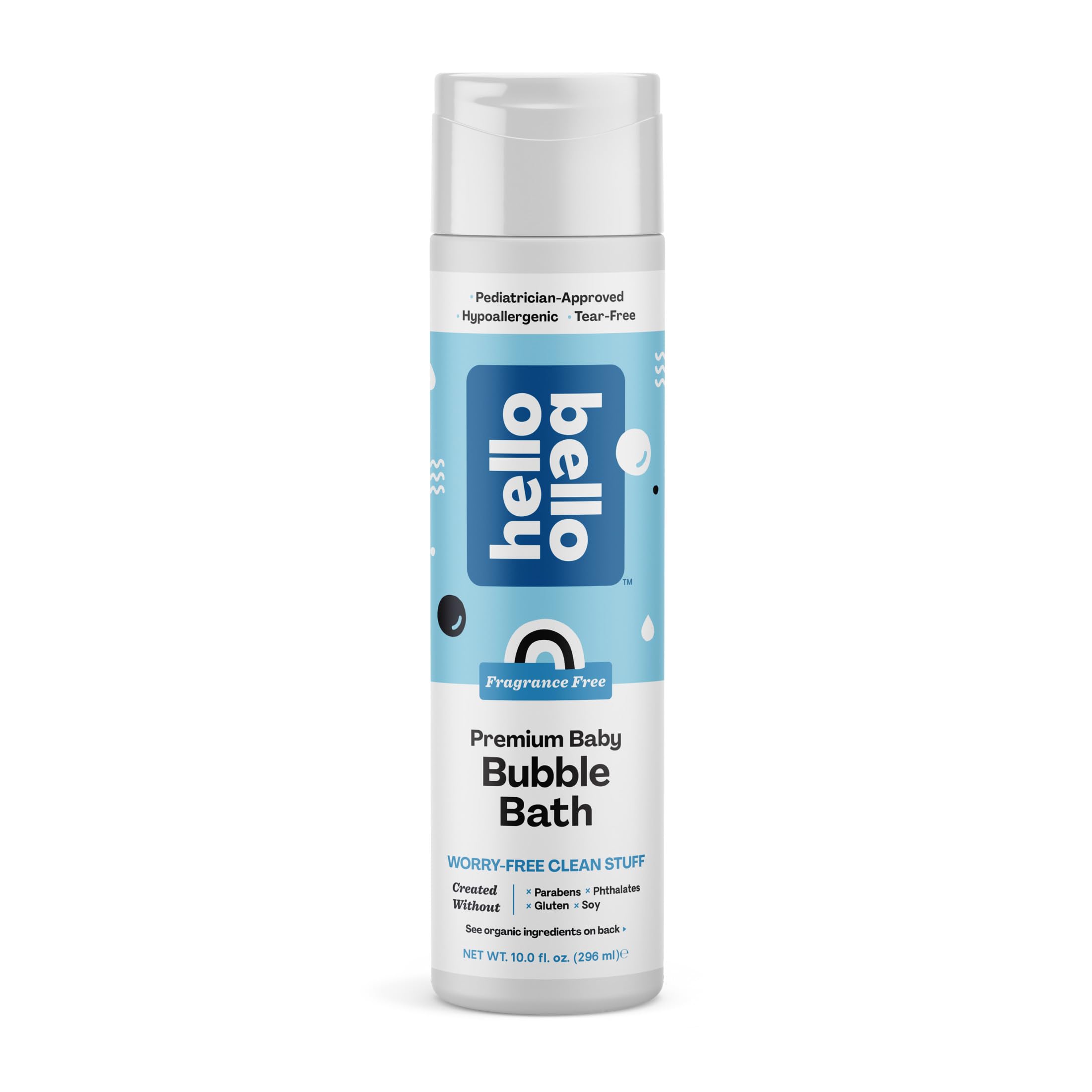 Hello Bello Fragrance-Free Baby Bubble Bath is Pediatrician Approved, Hypoallergenic, Not Tested on Animals (Leaping Bunny Certified), USDA Biobased 91% and designed with babies, budgets, and the planet in mind