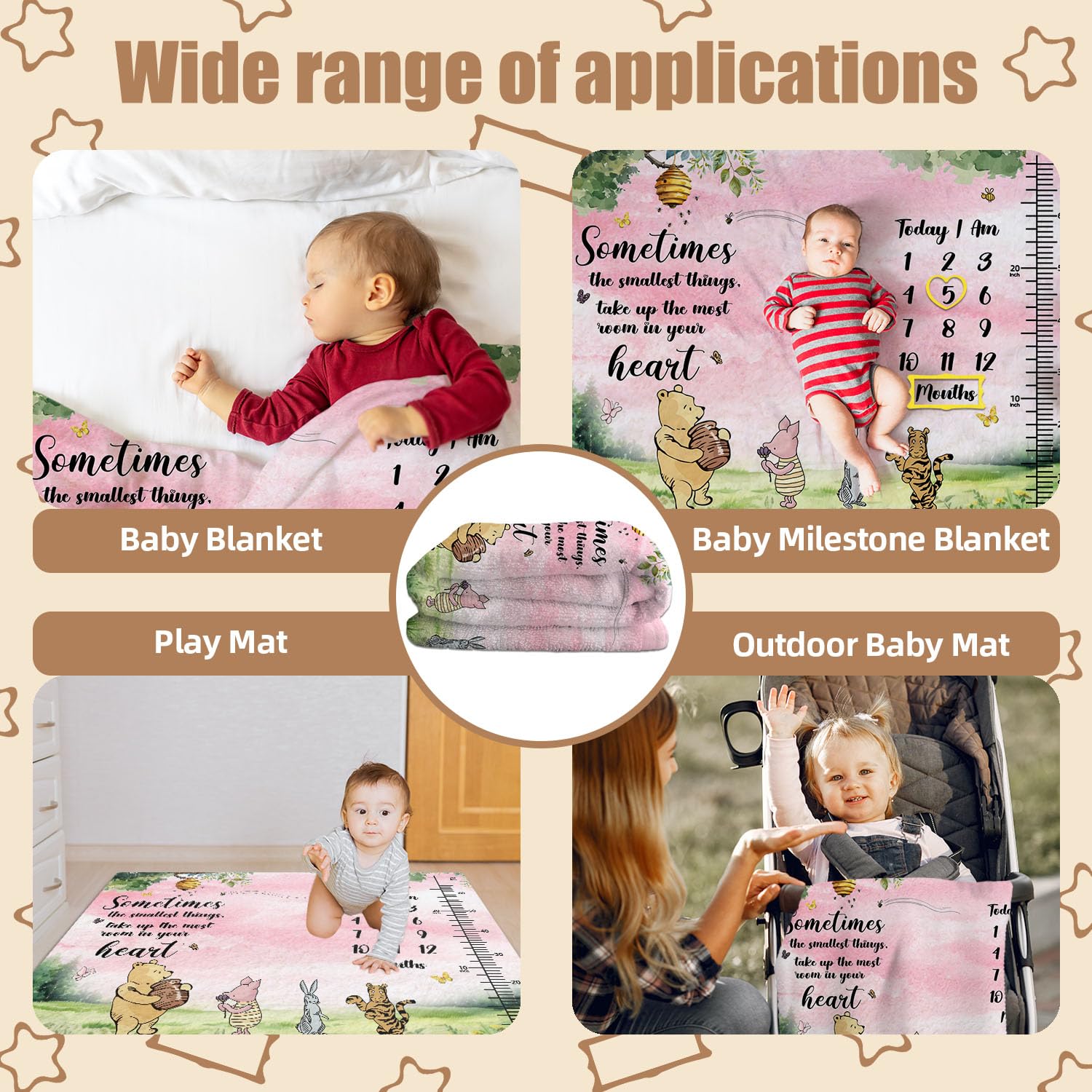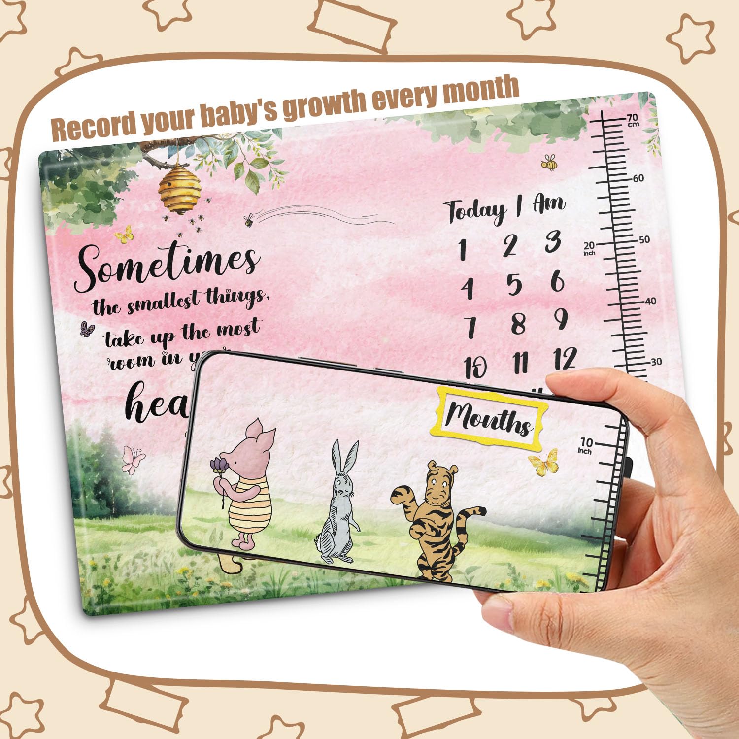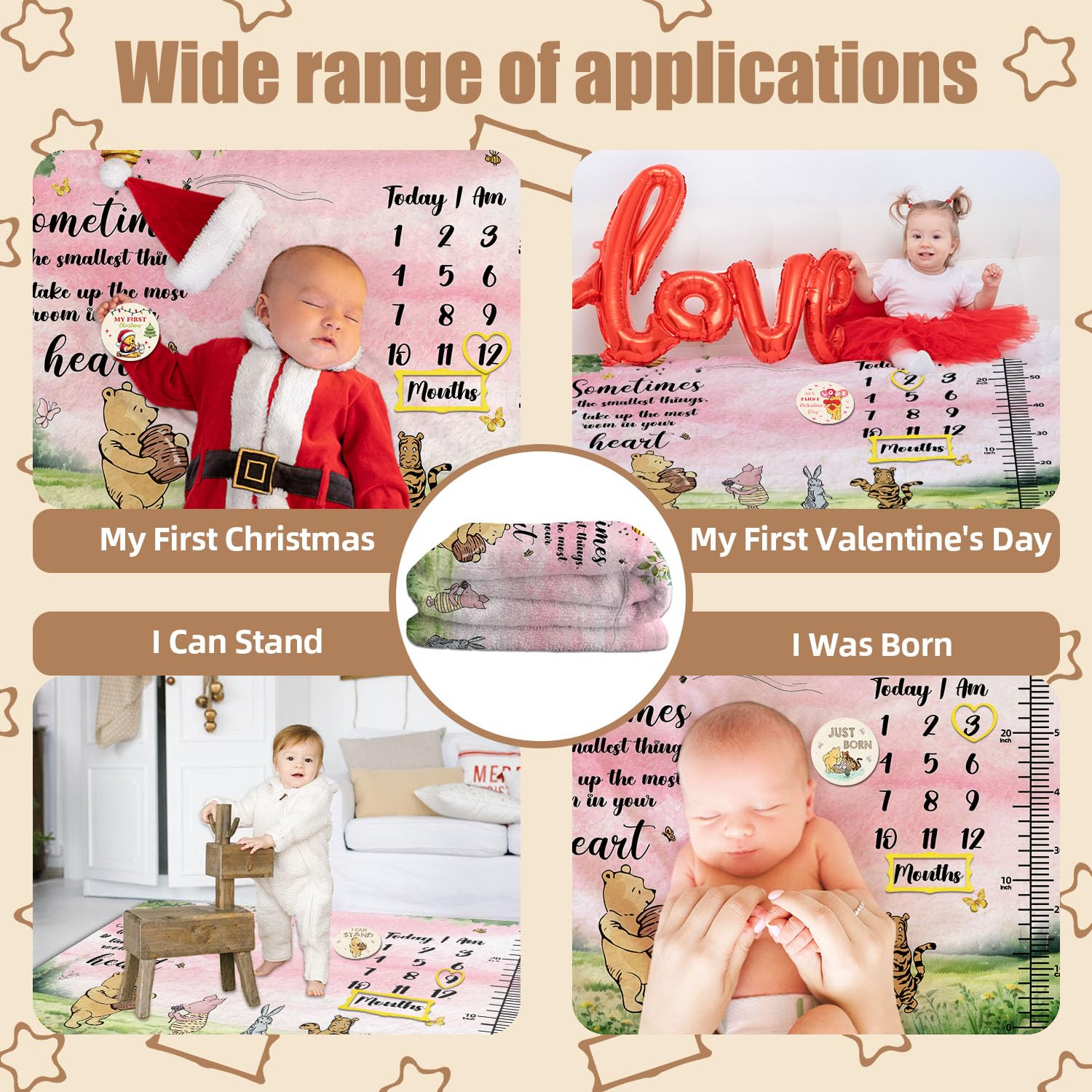 Perfect Gift: This baby monthly milestone blanket features a cute Winnie pattern design and comes with Winnie quotes, suitable for recording your baby's beautiful moments and adding a touch of cuteness and playfulness to photos. It's also a surprise gift for prospective parents.